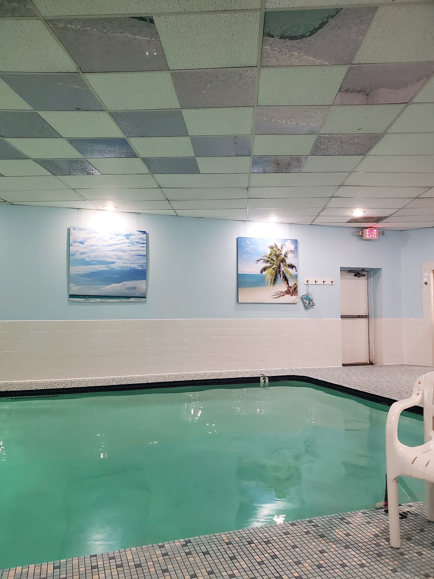 Awesome water aerobics class. Great pool, hot tub, showers etc. Everyone is friendly and knowledgeable. Everything is clean. I have a bad knee and I'm overweight. I started in October, I go twice a week and I can already tell a big difference in my knee stiffness and my flexibility. The pool is a good size and has different depths. Love it