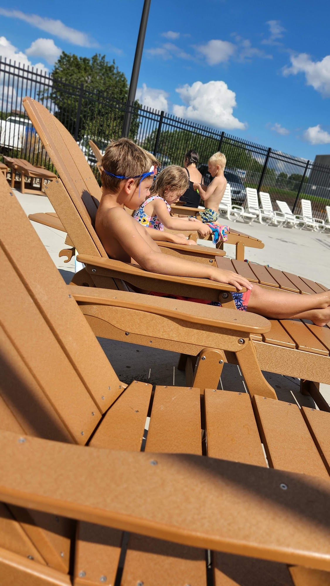Awesome pool/mini waterpark for kids; tiny slides, large slides 48”+, wadding pool, deep pool with diving boards, & lap style pool. Recommended age 2-14 yo. Clean & Comfortable all-weather lounge chairs with covered shade for an outstanding experience. Wristbands good all day. Wish it opened at 10:30am. Annual pass - worth the $ for local residents.