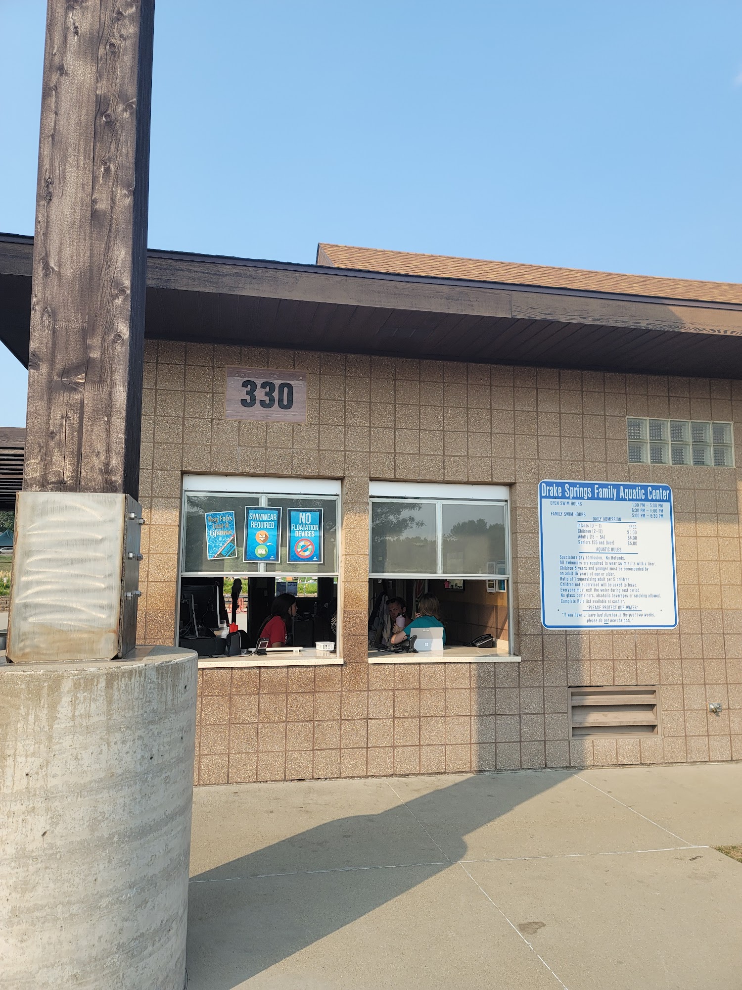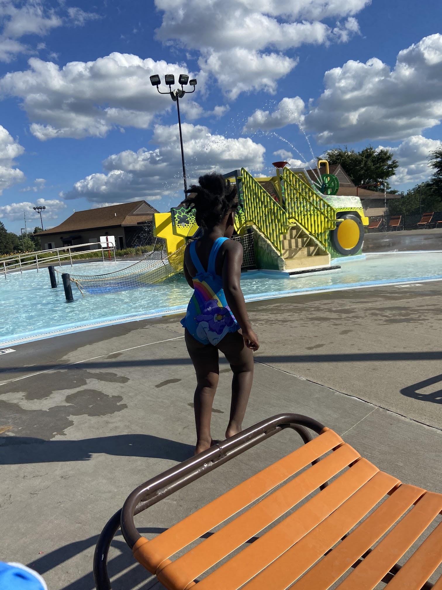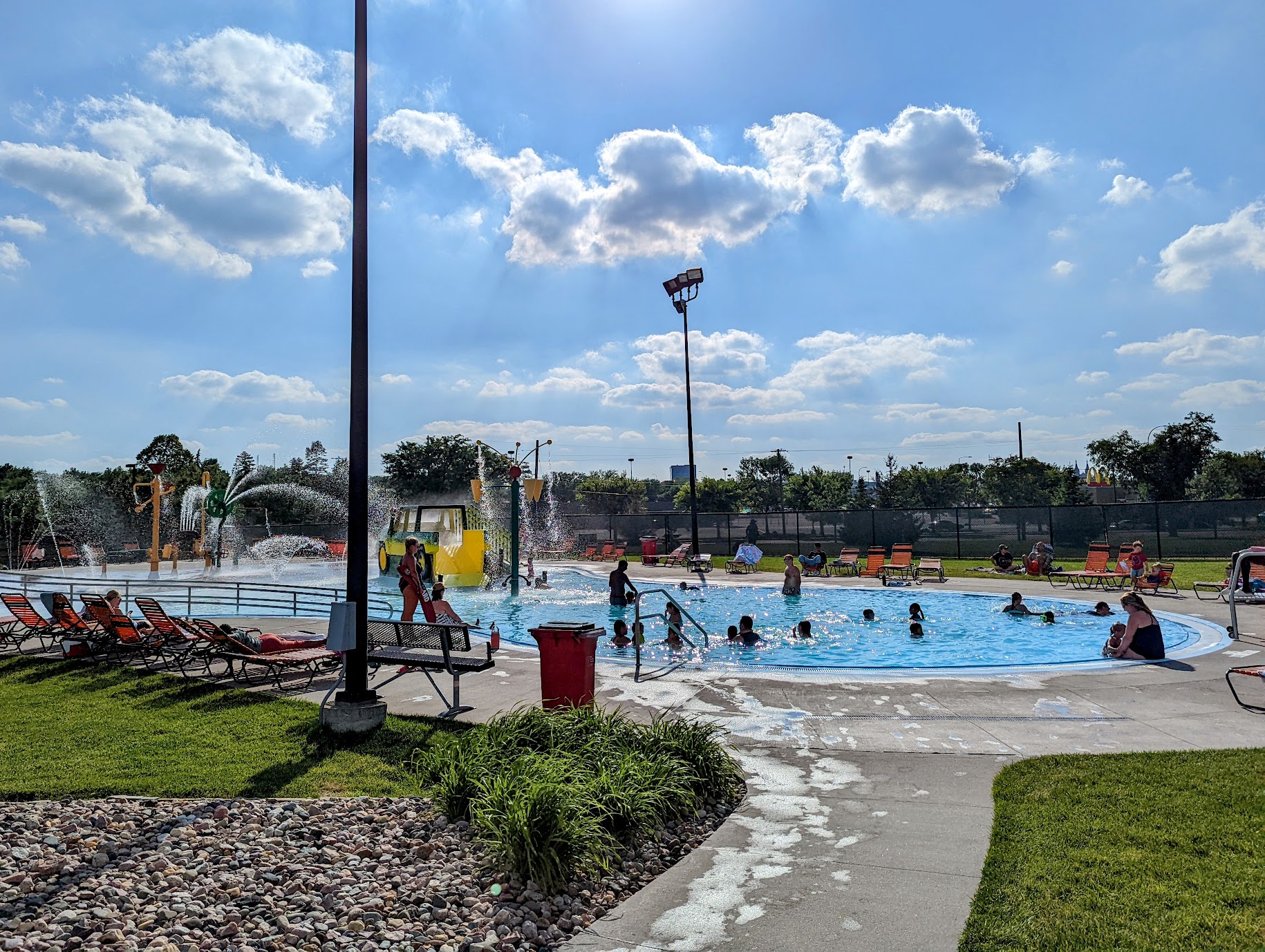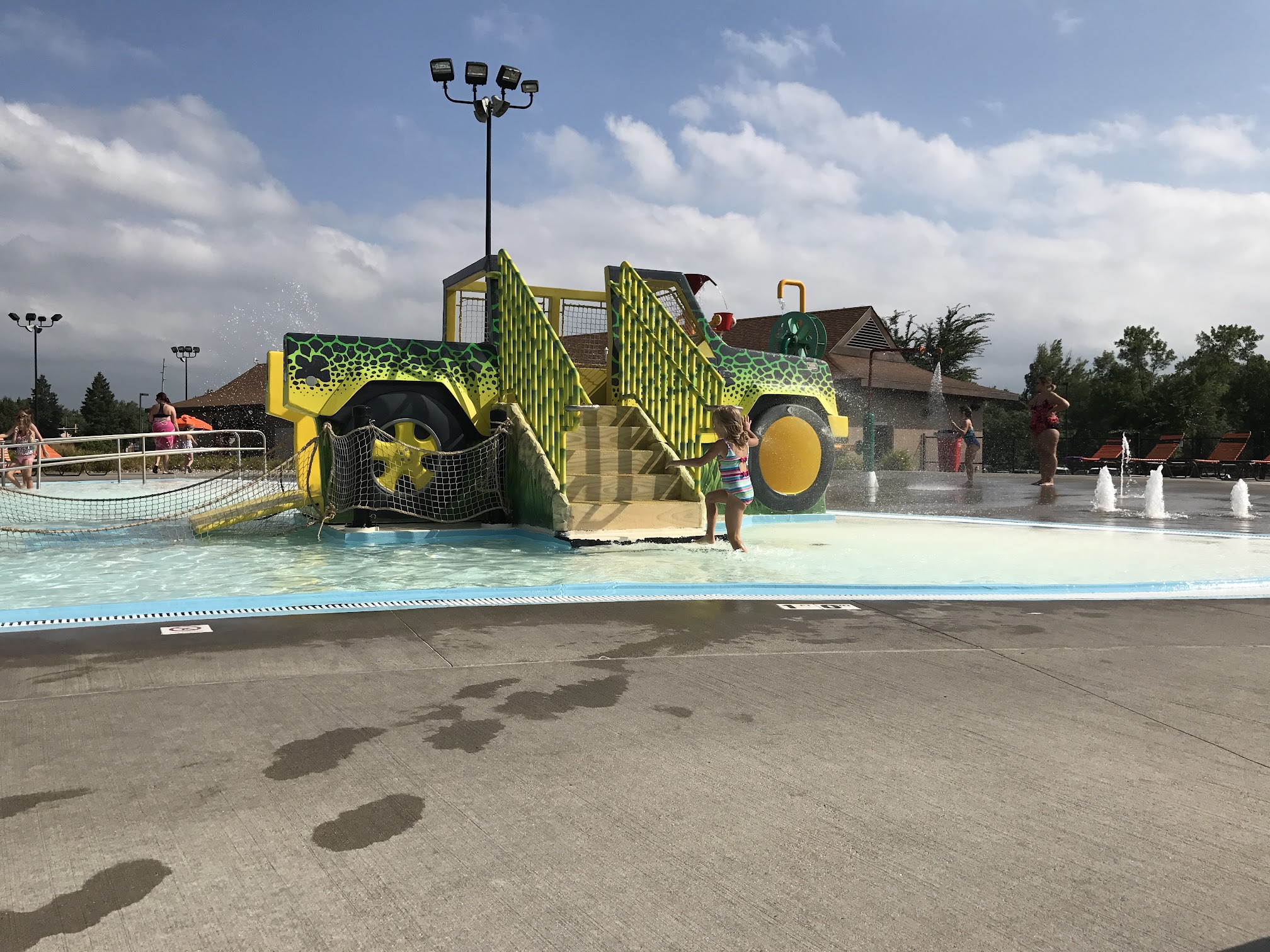 Great place to spend a nice hot day. They have a large splash pad area for little ones with a good variety of buttons and levers to turn the water on and off. There is a smaller pool for smaller kids attached to the splash pad with a depth of 3.5 at the deepest perfect for little ones. The deeper pool has dual diving boards. Last but not least is the waterslide for tubes and the lazy river. Great place!