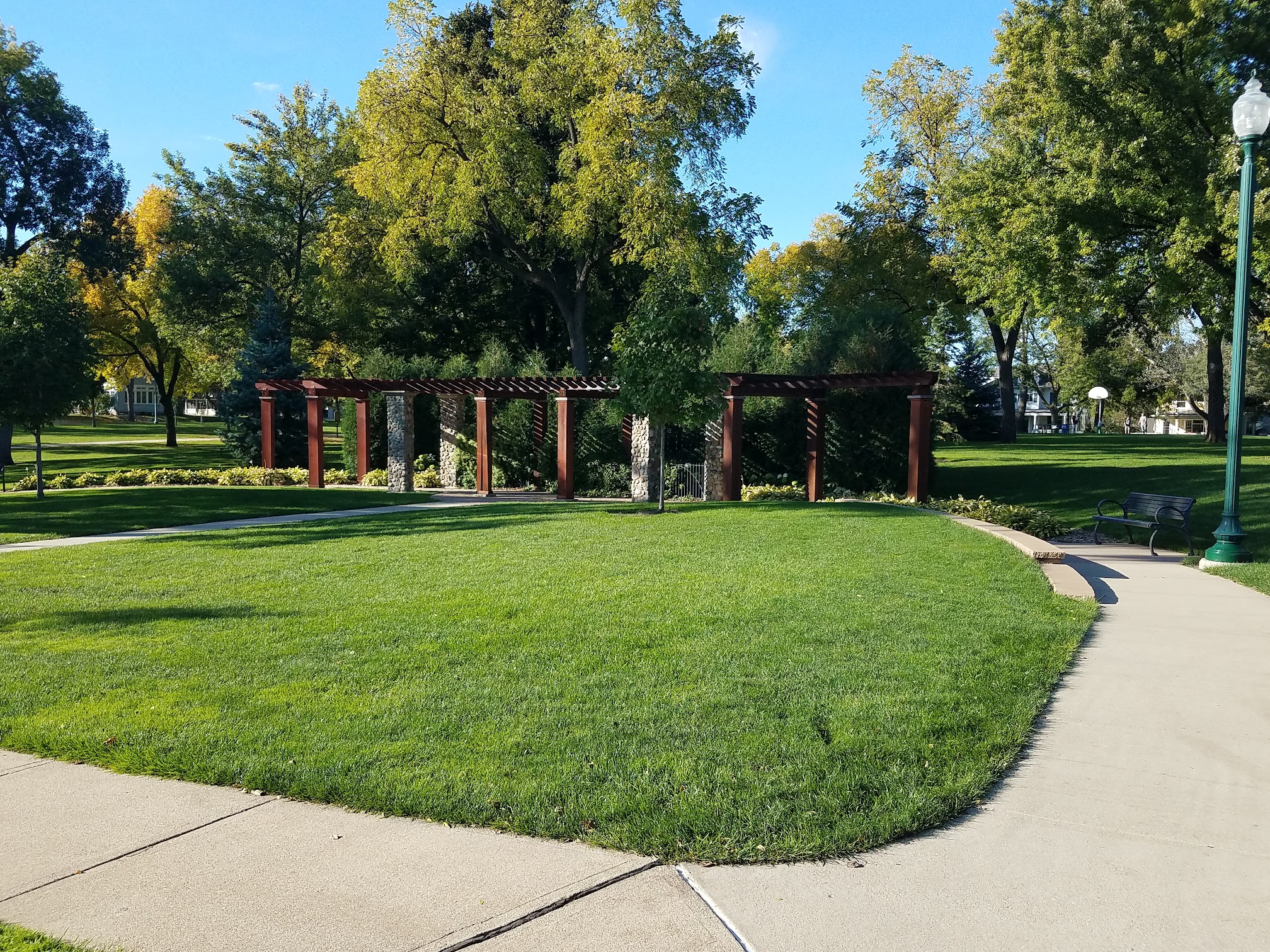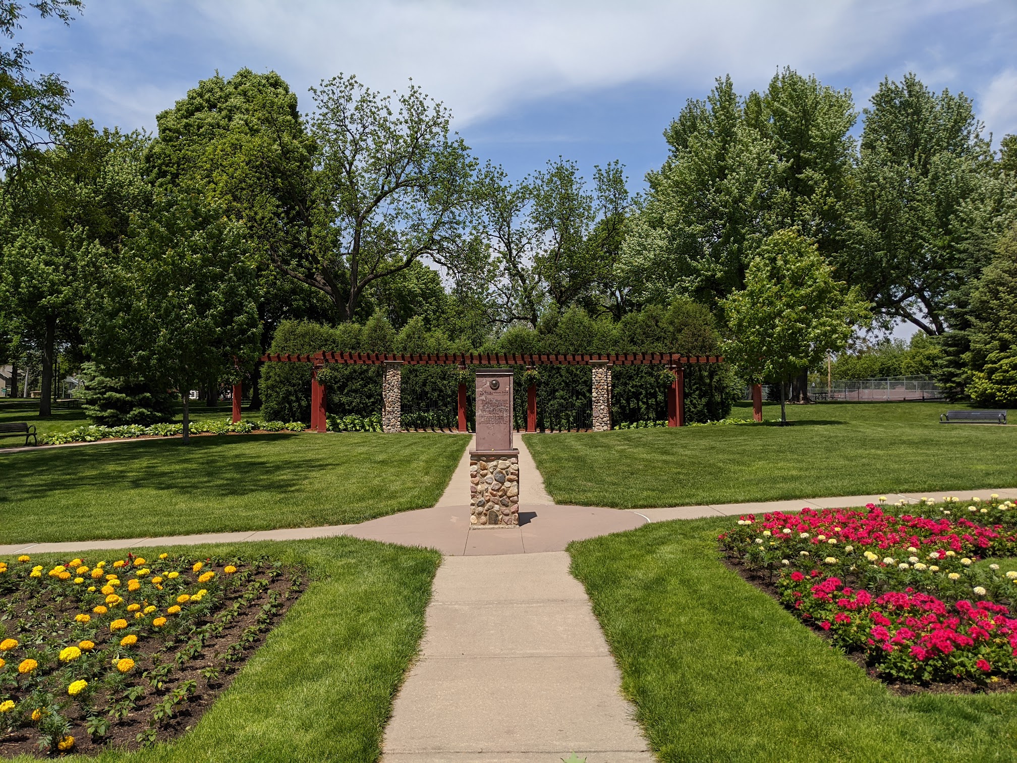 McKennan Park, located in Sioux Falls, is an enchanting and significant urban park that captivates visitors with its timeless charm. Adorned with majestic trees and inhabited by playful squirrels, the park boasts meticulously maintained grounds that create an inviting ambiance for leisure and recreation. Specifically, it stands out as an idyllic destination for a delightful summer evening. The pool, an exhilarating attraction, offers free admission and is supervised by vigilant lifeguards. Additionally, the park offers an array of amenities, including a multitude of horseshoe pits, tennis courts, baseball fields, playground equipment, and a refreshing swimming pool. The park's ambiance is enhanced by the presence of informative historical placards, lush greenery, picturesque gardens, convenient restroom facilities, and a charming band shell. Moreover, the park provides the option to reserve its facilities for private parties or events. Personally experiencing McKennan Park on a Saturday evening was a truly enjoyable and memorable experience. Its beauty is truly captivating, and I wholeheartedly recommend it as a must-visit destination.