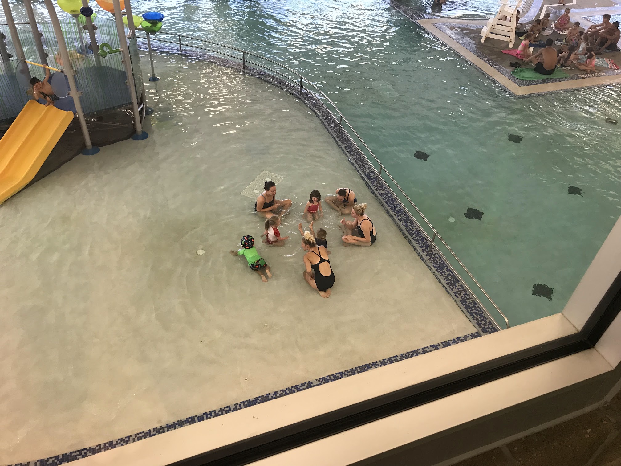 Absolutely terrible place. I would give it zero stars if I could. I took my wife and kids there this past weekend. My niece, who is 2, wanted to wear her life jacket and we were told by a lifeguard she couldn't because "We want to encourage parents to be close to their kids, so life jackets aren't allowed."...WHAT??! That's insane. Next, my wife gets yelled at for trying to accompany our oldest up the stairs to the slide....Yes, you read that right. Only one person can be on the entire spiral staircase at a time. Don't even think about being at the bottom of the single small 16 foot slide to happily catch your kid in your arms because that will get you yelled at also! Goggles for little kids? Forget about it! Our oldest (7) was on the lily pads and got yelled at for wearing goggles. lol, this place was a joke. Do yourself a favor and go swimming anywhere else but here...even your own toilet bowl would be more fun than this place.