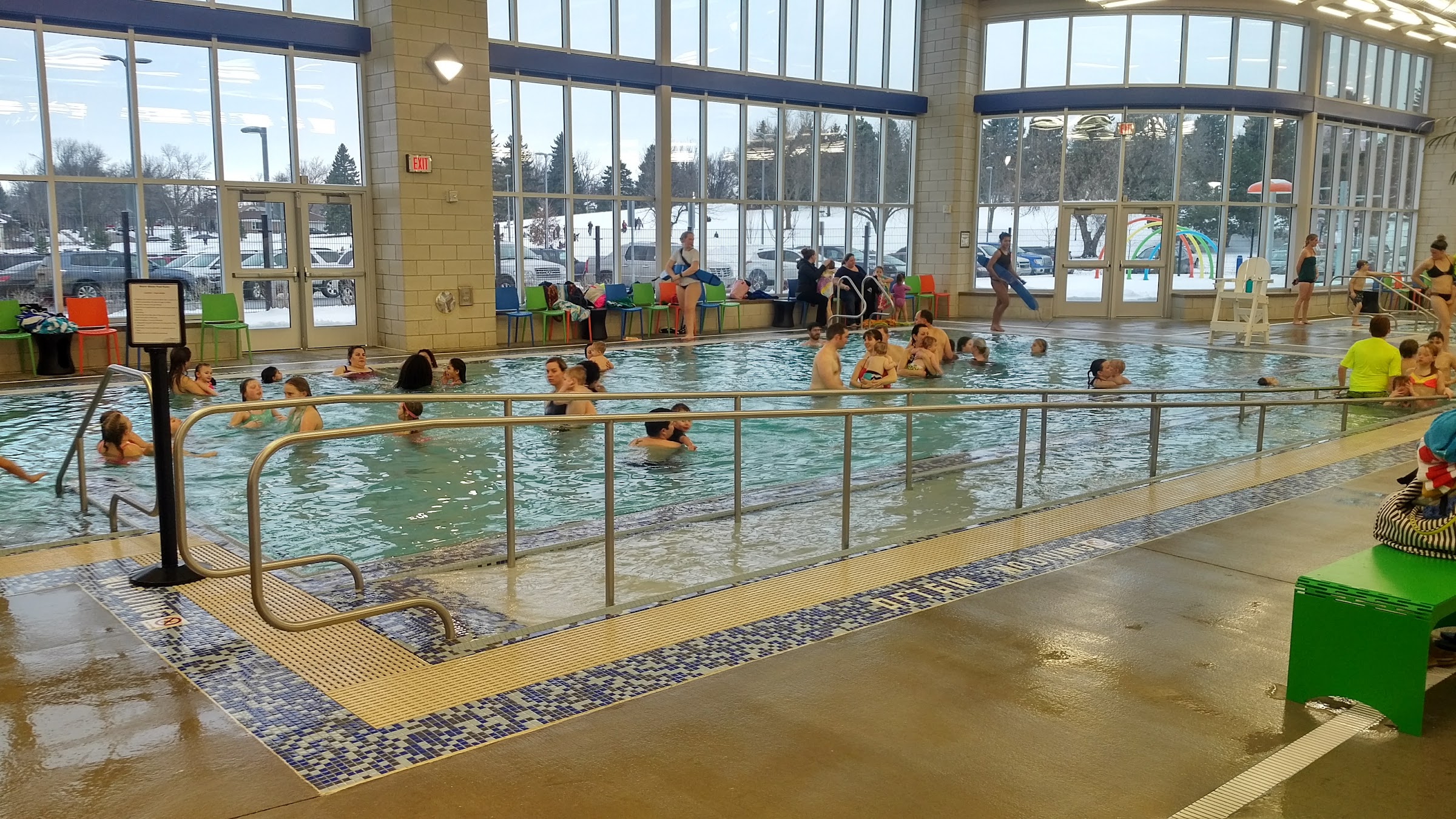 I thought this place would be packed on a Saturday afternoon in March but now I know why it is not! 1: No hot tub! Which they need cuz the pool water is not warm. 2: the water in toddler pool & lazy river is COLD. My kids age 2-13 didn’t want to swim in there so they only swam in the “warm water pool” which has LOTS OF RULES. 3: We all had burning eyes the rest of the day after swimming here for two hours. 4: the lift chair by the pool poses a hazard. The foot rest sticks out into the walkway in the perfect position to trip someone. Will we come back? No. And based on reviews- I believe many others feel the same way. Which is too bad cuz they could make a lot of money in the winter with repeat customers.