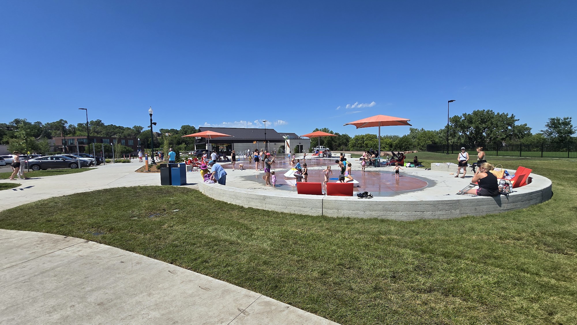 The T. Denny Sanford Splash Pad, located within Falls Park at 810 N Phillips Ave in Sioux Falls, SD, is a popular, free public water play area designed primarily for children. It features various interactive water sprays, jets, and structures, offering a refreshing way for families to cool off during warm weather.
