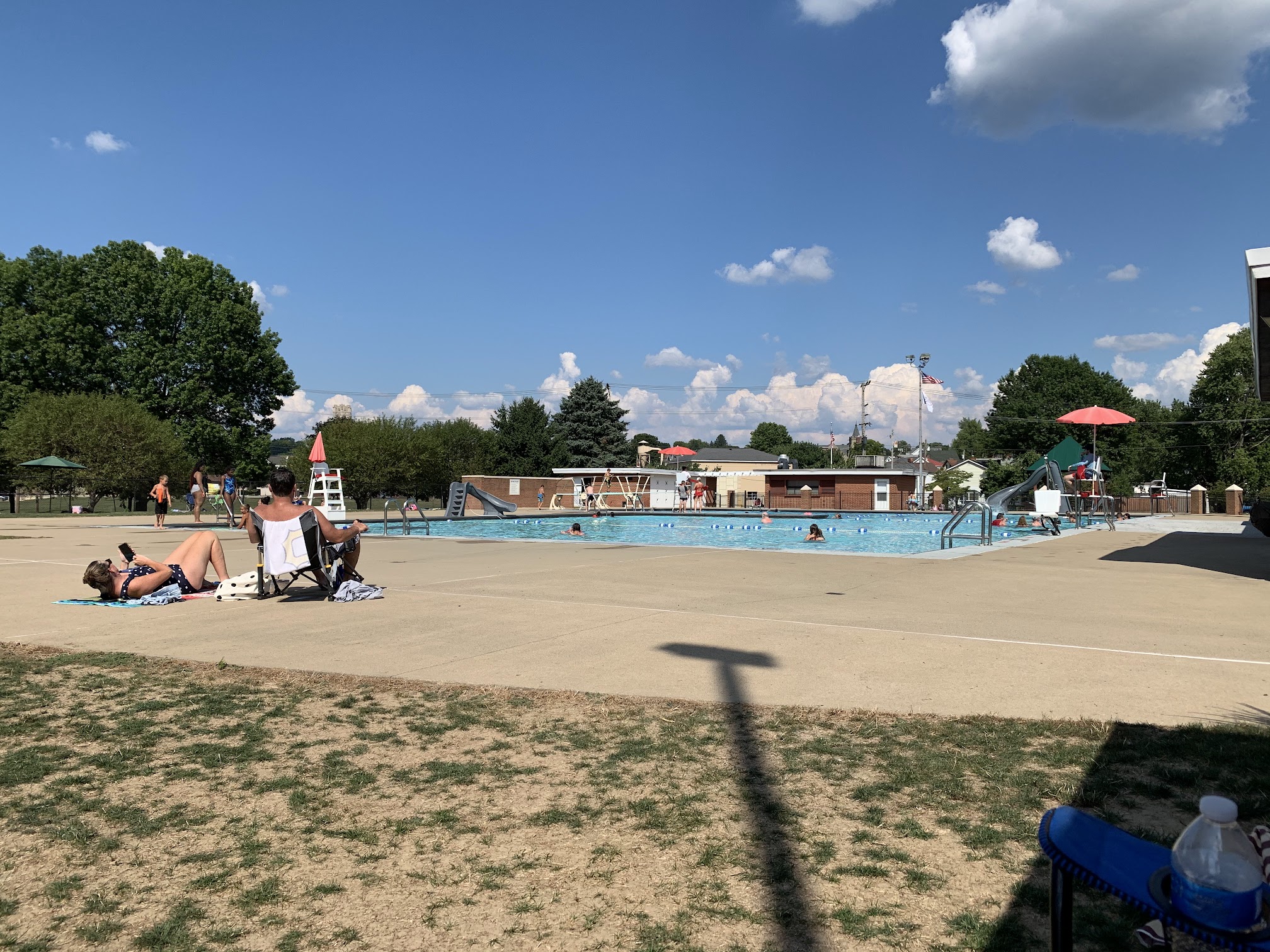 Nice pools here, kiddie pool and older kids pool. Has diving boards and a slide. Bring your own chairs would be a recommendation.