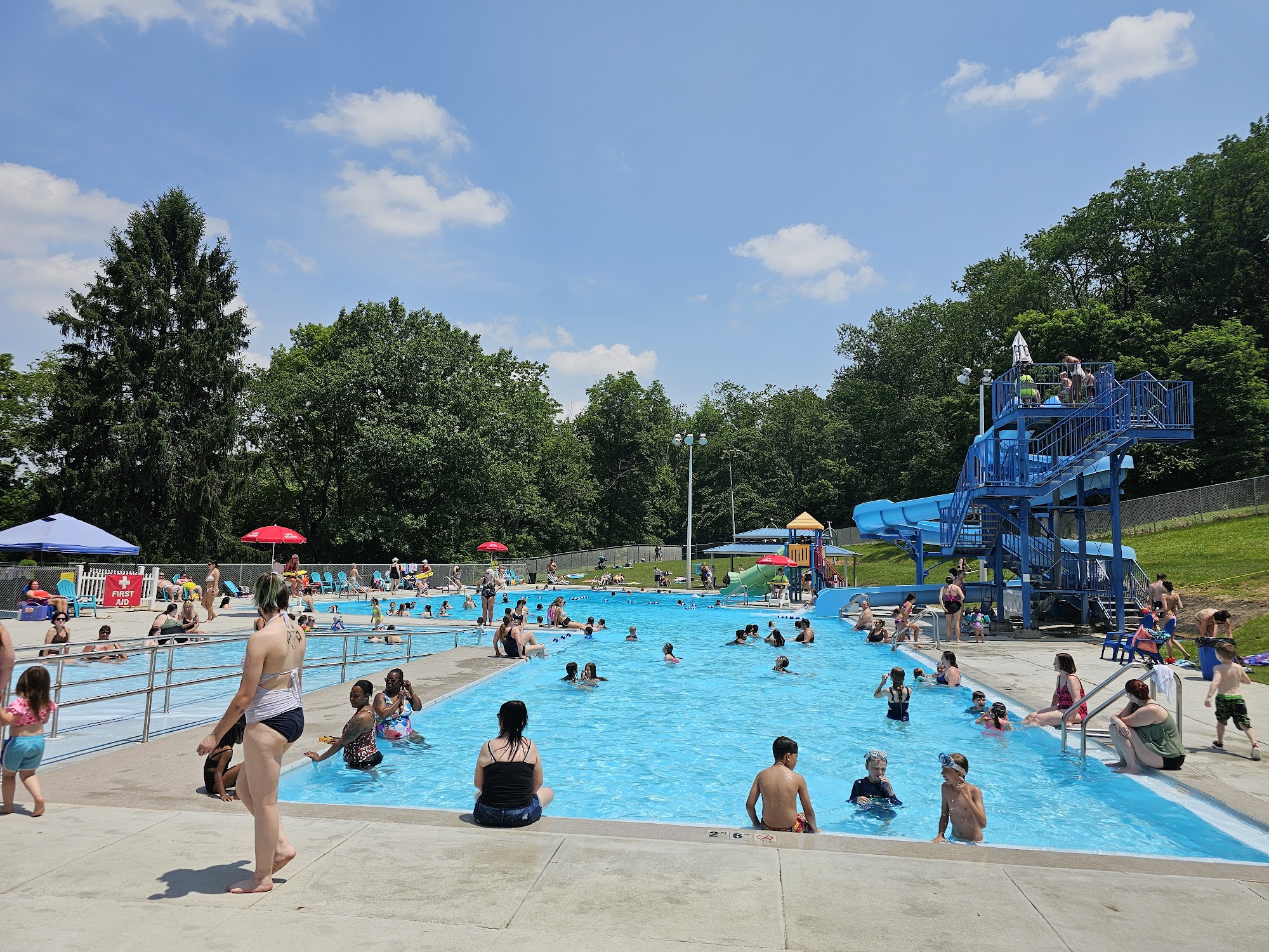 Love it here. Great pool for our community in the warmer months. Various levels so it's accessible to the whole family, along with accommodations like ramps, even into the pool. Snack bar is cash only. And there's a splash pad and slides.