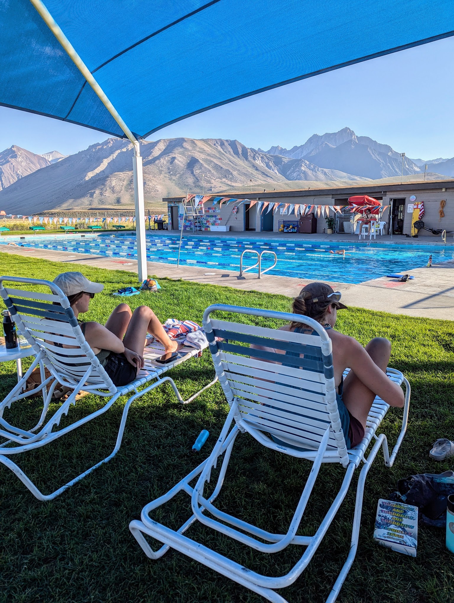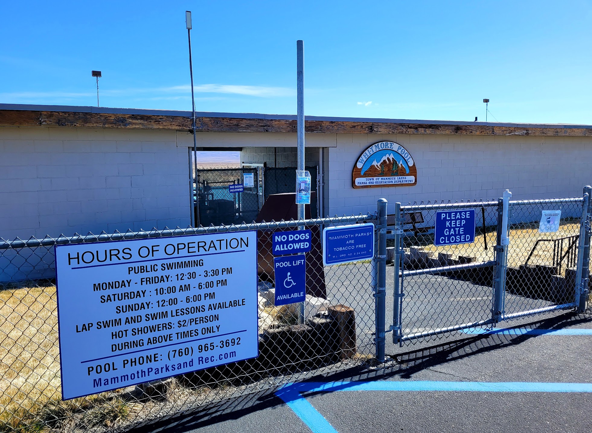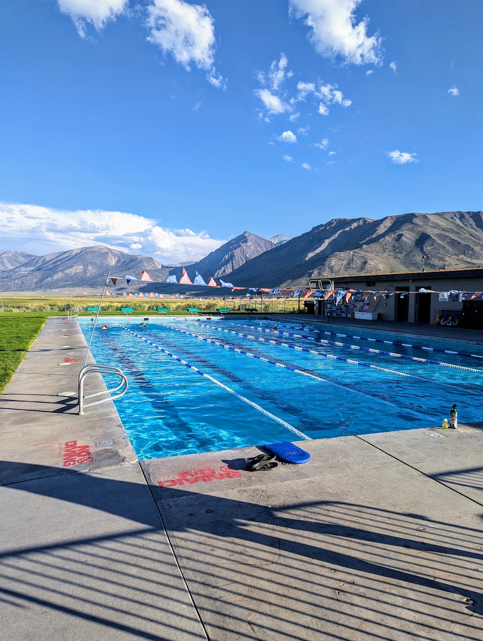 First time here for an evening lap swim! What an amazing experience to be able to swim outdoors, especially with my adult son...in this kind of environment... wowzers !! Only 6 bucks to swim, showers, and a clean locker room awaits you afterwards. Bring your own towel. The water feels amazingly silky, it's extremely clean, and even feels like it has more buoyancy! For those who don't swim(no charge)...they provide a very nice grassy area with shade tarps to lounge and enjoy the incredible view while waiting for those who do swim. If you're a lap swimmer and in the Mammoth Lakes area, I highly recommend the very short drive over to the Whitmore Pool. I swear I cut 5 mins off my previous time 💥😂 a must experience that you won't soon forget!