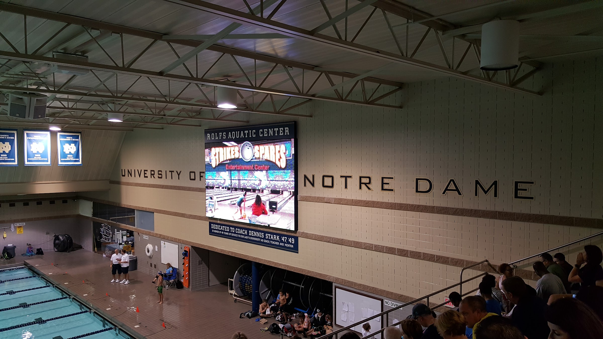 Very disappointed for a div 1 college. The natatorium at south side high school in fort Wayne is a lot nicer. This place was very hot for spectators and swimmers complained it was hard to get out of pool. But the had doors open to joyce center and that was really neat to see. Plus they have a really cool lobby with all the sports legends from coaches to players in every sport.