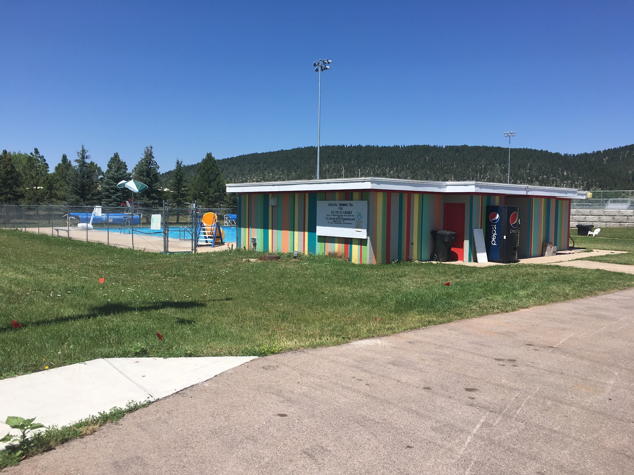 The Sundance Swimming Pool, located at 687-777 WY-585, Sundance, WY 82729, USA, is a public outdoor recreational facility. Open seasonally during the summer, it offers a refreshing escape for residents and visitors. The pool typically includes a main swimming area and often a dedicated shallow or wading pool for children, along with essential amenities like changing rooms and restrooms, making it a popular community spot for aquatic activities and relaxation.