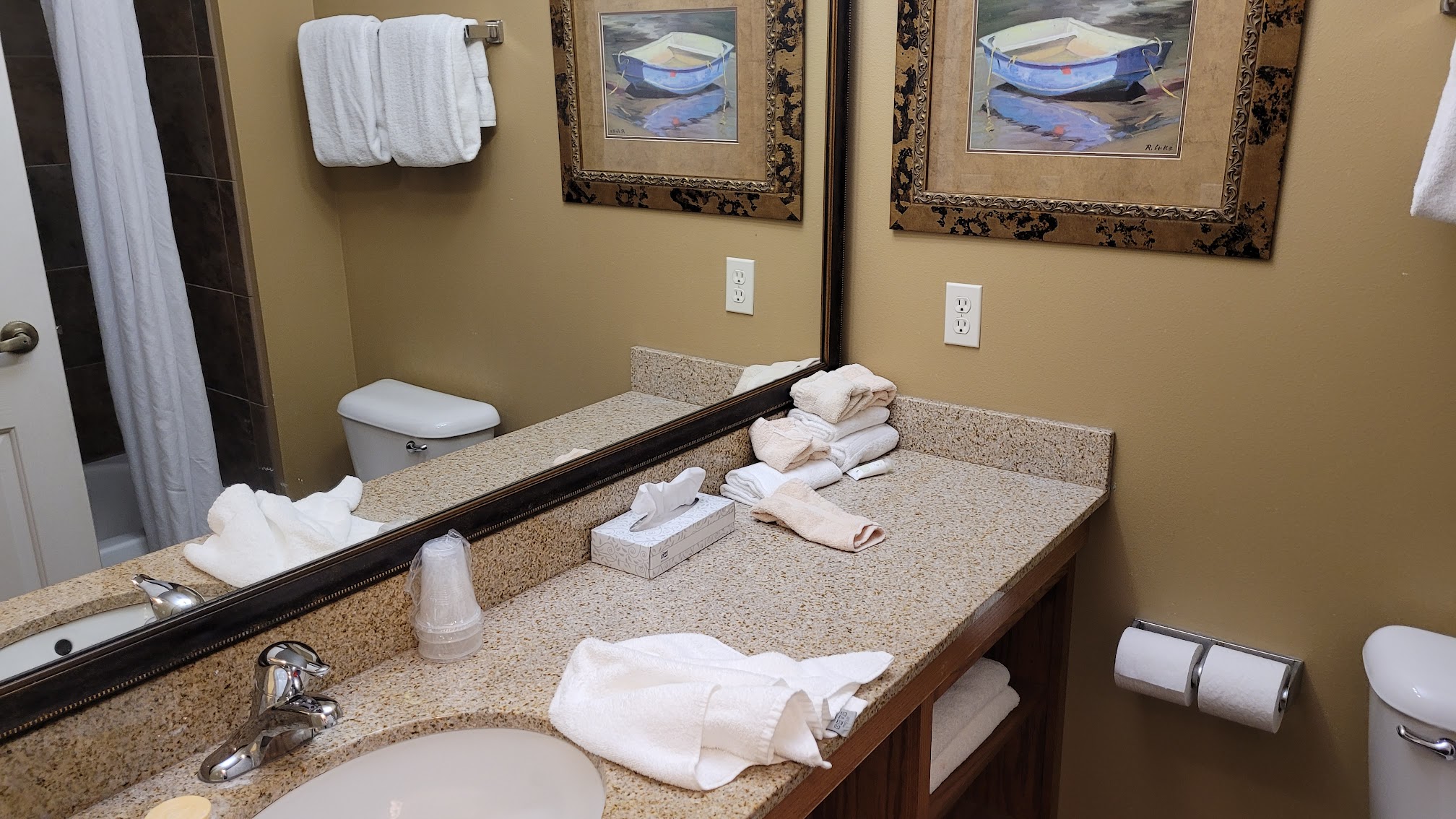Booked a 2 bedroom condo in the trestle building. Upon arrival, found one of the toilets had feces all over the bowl. Dishwasher full of dirty dishes & several of the pans dirty in the cabinets. It seemed like the place used to be nice, but is now very rundown. Waterpark only had enough towels for the first few families in the morning & then nothing. No tubes for the slides or lazy river. Not worth the price we paid to stay there (almost $600 for 2 nights in the off season). Our 1 year old got sick & we had to leave a day early, absolutely no partial refunds.. even after dealing with such a gross place to stay. The view of the lake is nice!