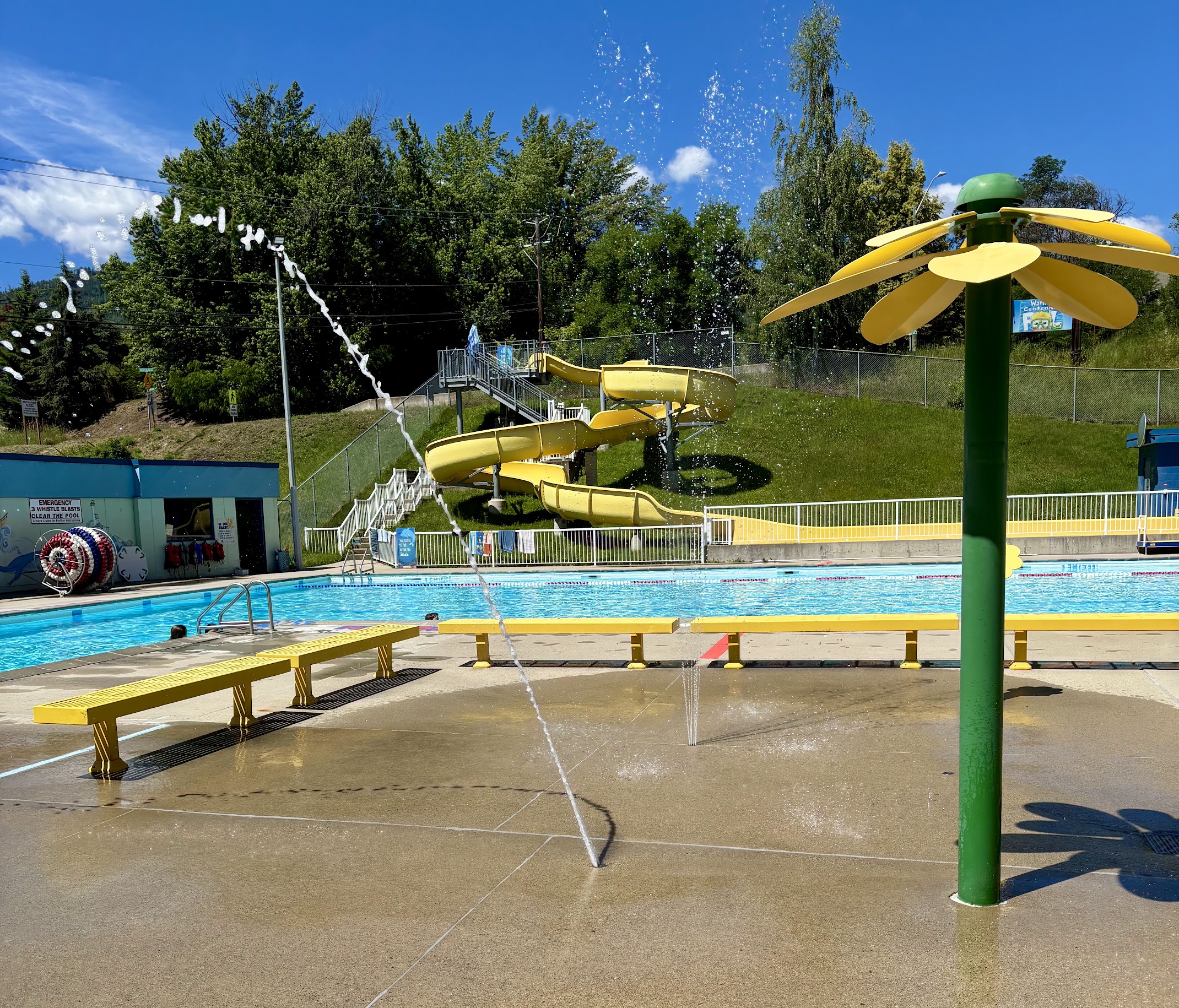 Great pool probably the best in the Kooteney‘s West Kooteney‘s perhaps the slides are fun and the amazing splash Park plus The swimming pool and nice shady area.