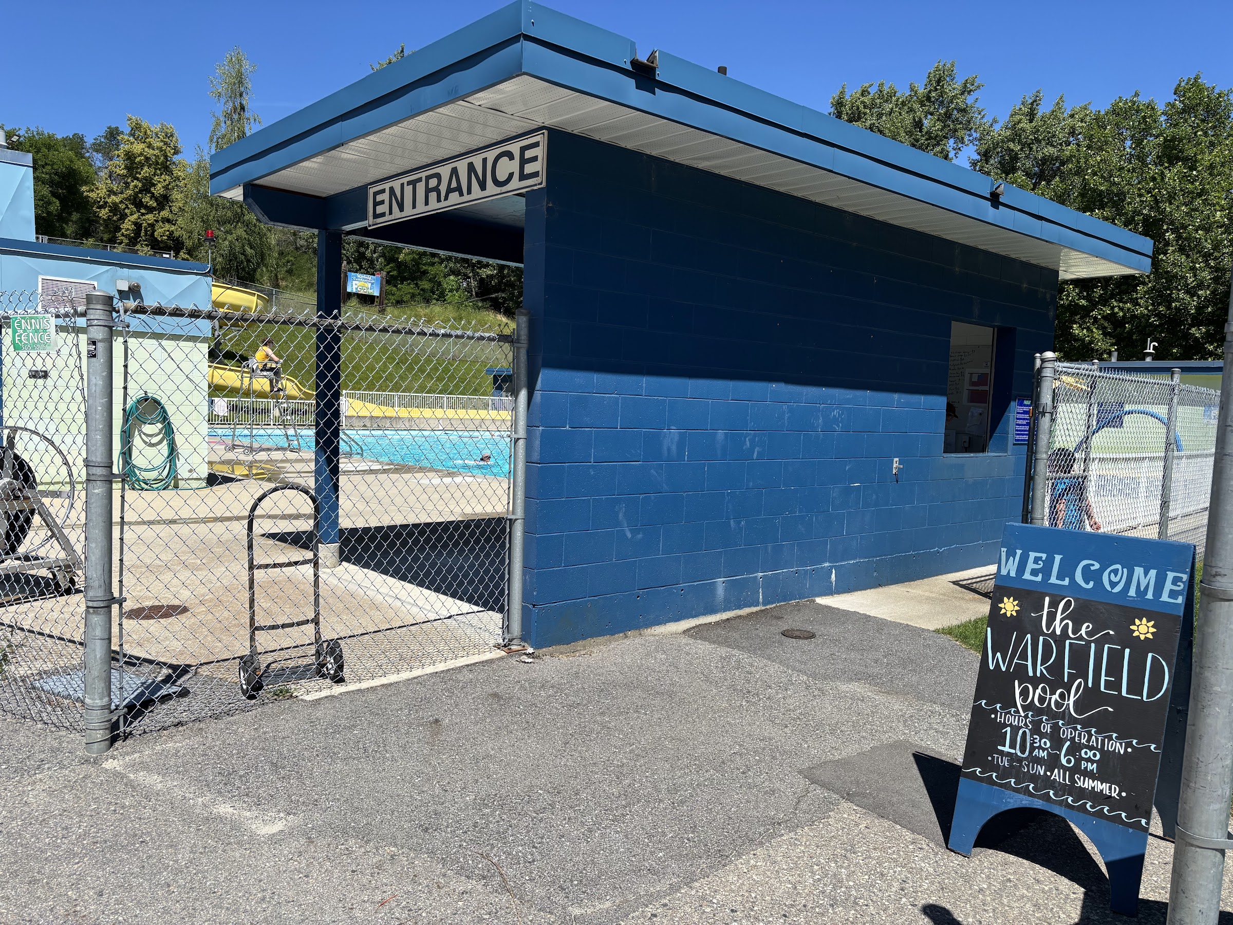 A fantastic summer spot for families! The Warfield Outdoor Pool has everything you need for a fun day with the kids — a splash park, two waterslides, a large pool with a dedicated lane swim, and even a small diving platform. The entire facility is very clean and well-maintained. The concession stand offers a good selection of drinks and frozen treats, perfect for a hot day. There’s plenty of seating, lounge chairs, and a few shaded areas to relax. Open daily in the summer (Tuesday to Sunday, 10:30am–6:00pm), it’s a great place to cool off and enjoy the sunshine. Highly recommend for families visiting the area!