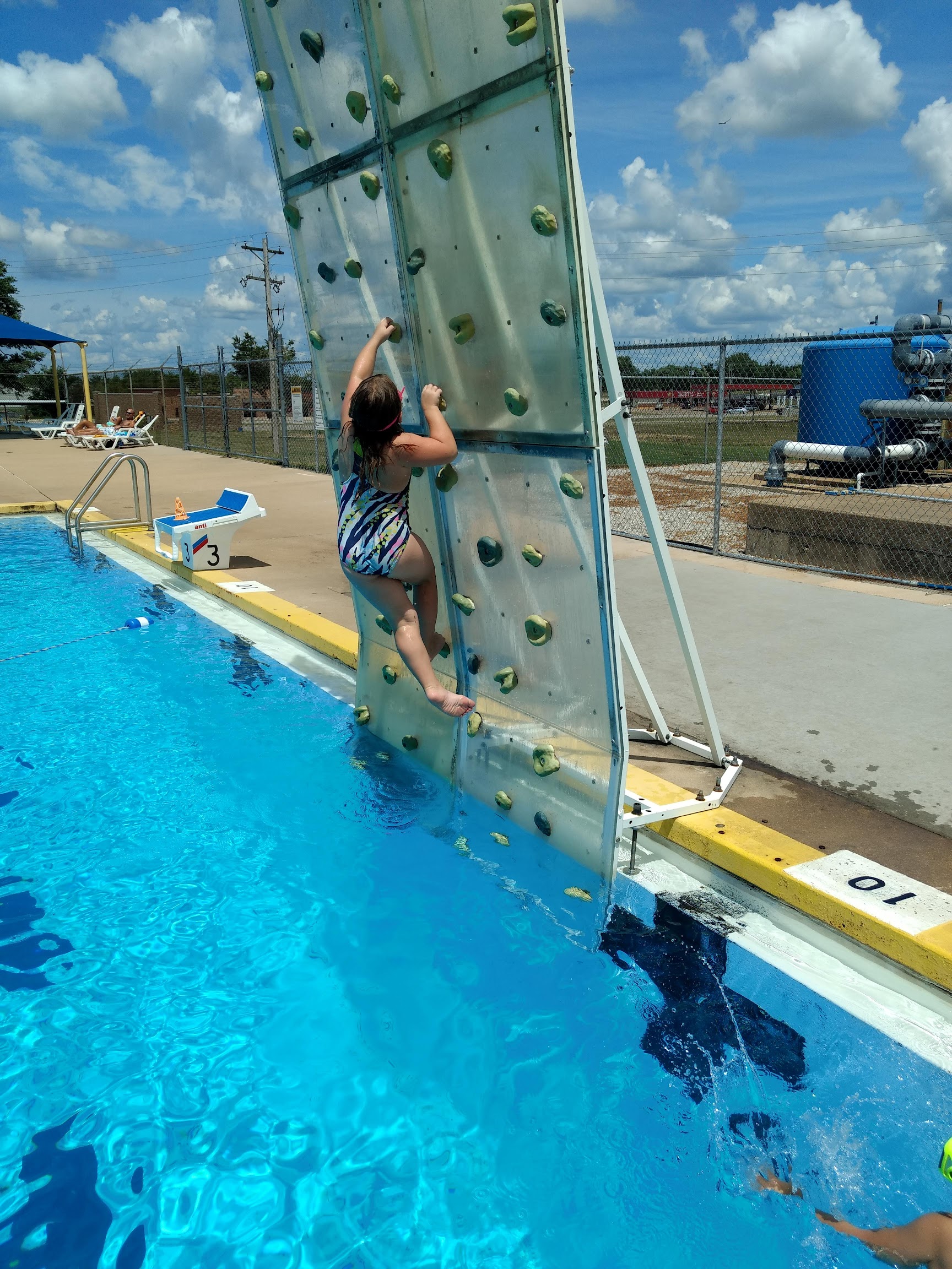 What are people saying (AI review summary)? The reviews present a mixed view of the pool facility. Positively, many guests enjoy the large and fun pool, great water slides with short waits, and the climbing wall, highlighting it as a good family destination. Some appreciate the snack shop with good prices and efficient lifeguards when on duty. However, a dominant and consistent complaint across multiple reviews is the poor cleanliness and maintenance, specifically regarding 'disgusting' or 'nasty' bathrooms and changing rooms, a 'nasty' pool bottom, and chipping paint. Deteriorating floating animals and issues like non-functional slides or missing safety nets on lily pads are also mentioned. Other criticisms include inappropriate music, lax staff, a desire for major remodels and upgrades given rising prices, and mixed opinions on the availability of chairs.