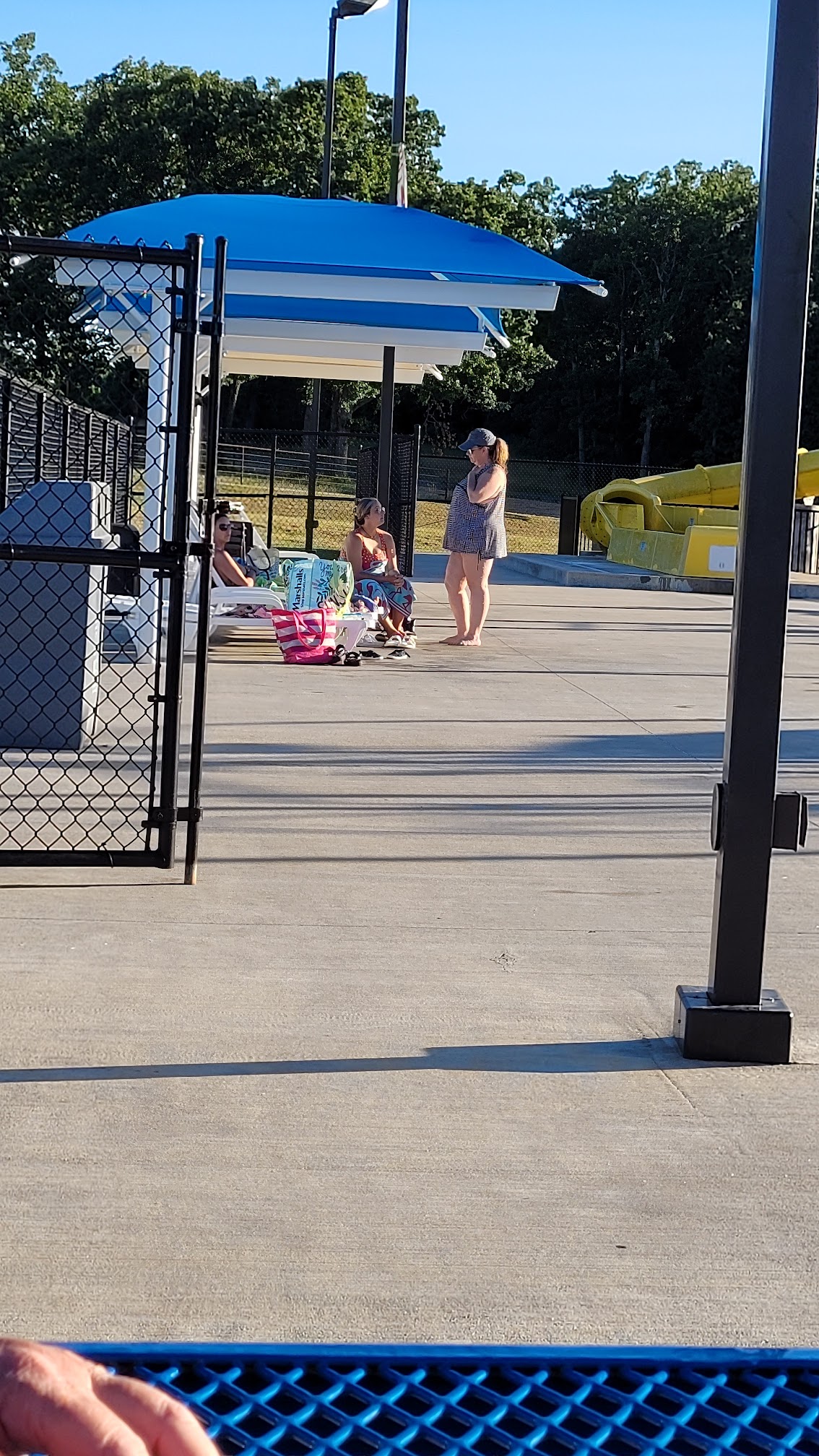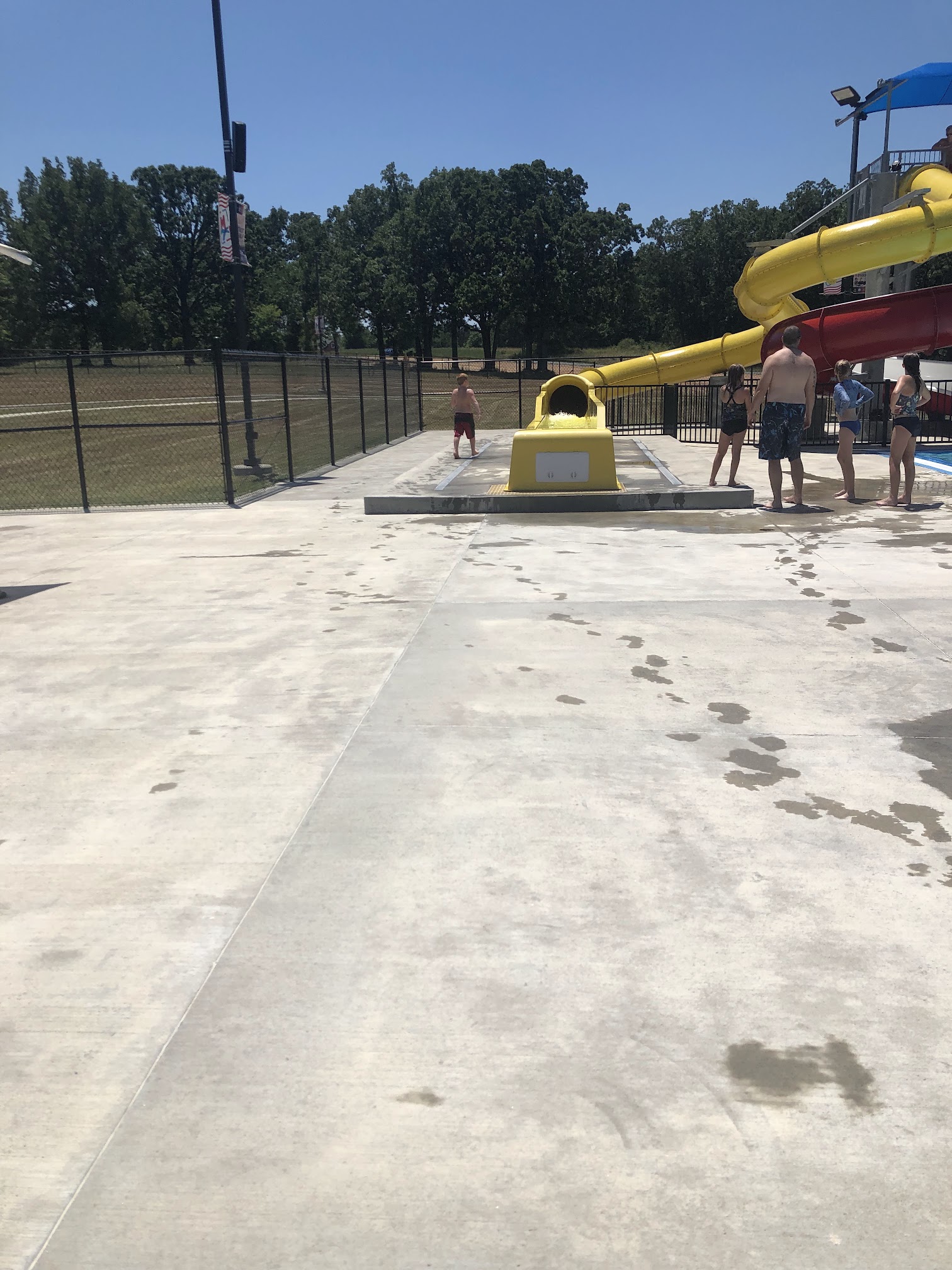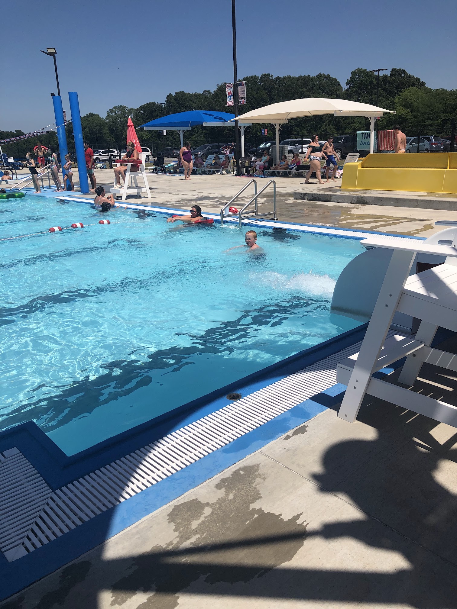 There's actually really no place to swim unless you dive off the board and that's a little area Ron the other side of the rope that separates the diving pool from everything else is very small so much congestion on aquatics then all the little ones and their parents are out there in the pool is only 10 ft 6 deep blow the diving board shower and restroom area is so dirty a cheeseburger that's smaller than McDonald's is 7 dollars an 85 cents you don't get there early enough all the beach whales find all the shade and all the chairs before anybody else gets them but the main thing there's no adult swimming area the so-called lazy river is the biggest joke I ever seen all other pools that see that just laugh and laugh they put so much gymnasium and aquatic stuff is so congested an also two big slides they need to remove some of that gymnasium it's too much stuff and no swimming area at all