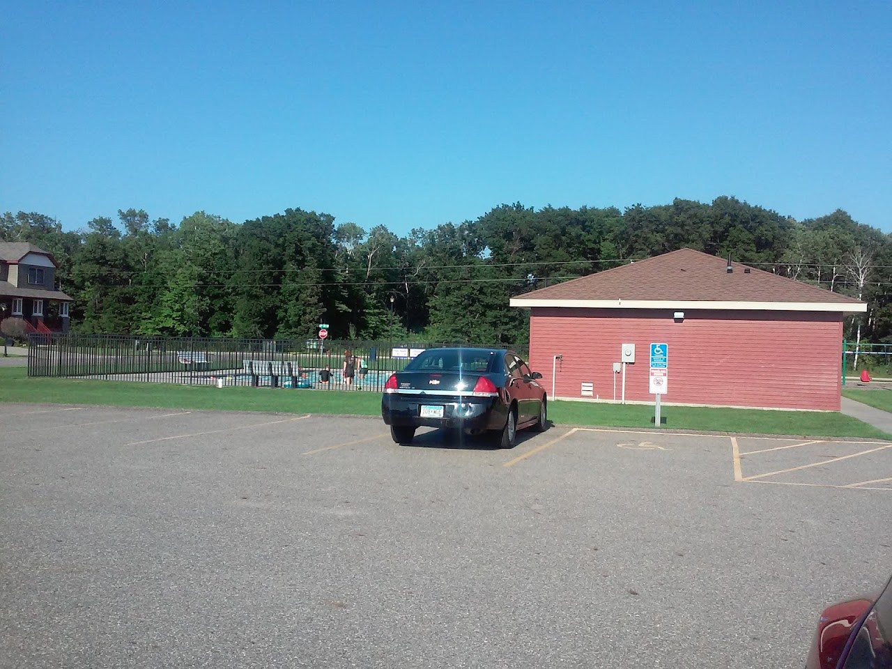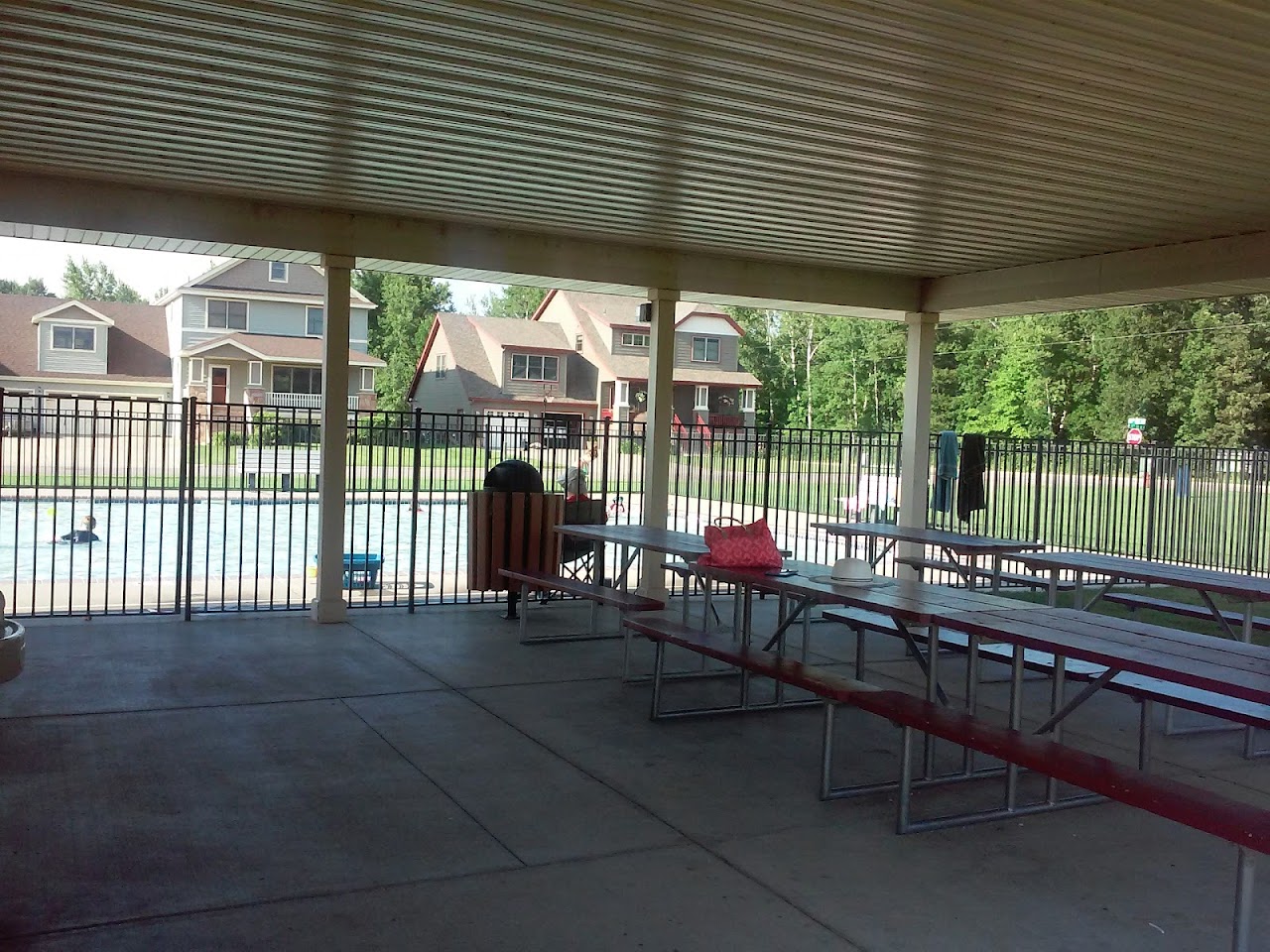 Located within a housing development. This park offers a small wading pool that is gated off, there was also a lifeguard for any accidents. The life guard provided floaty toys for the kids to play with! There are a couple benches, as well as standing umbrellas around the pool. There is a bathroom, with a small standing shower to rinse off in before entering the pool. As well as an awning with a couple of picnic tables outside of the pools fence. Directly next to the wading pool is a playground. I thought that was a nice touch. When we were done with the pool, we dried off on the playground before getting back in the car. It's a simple playground, but a nice addition to the pool. There is also a decent amount of grass around the pool and the playground which could be used for a picnic.