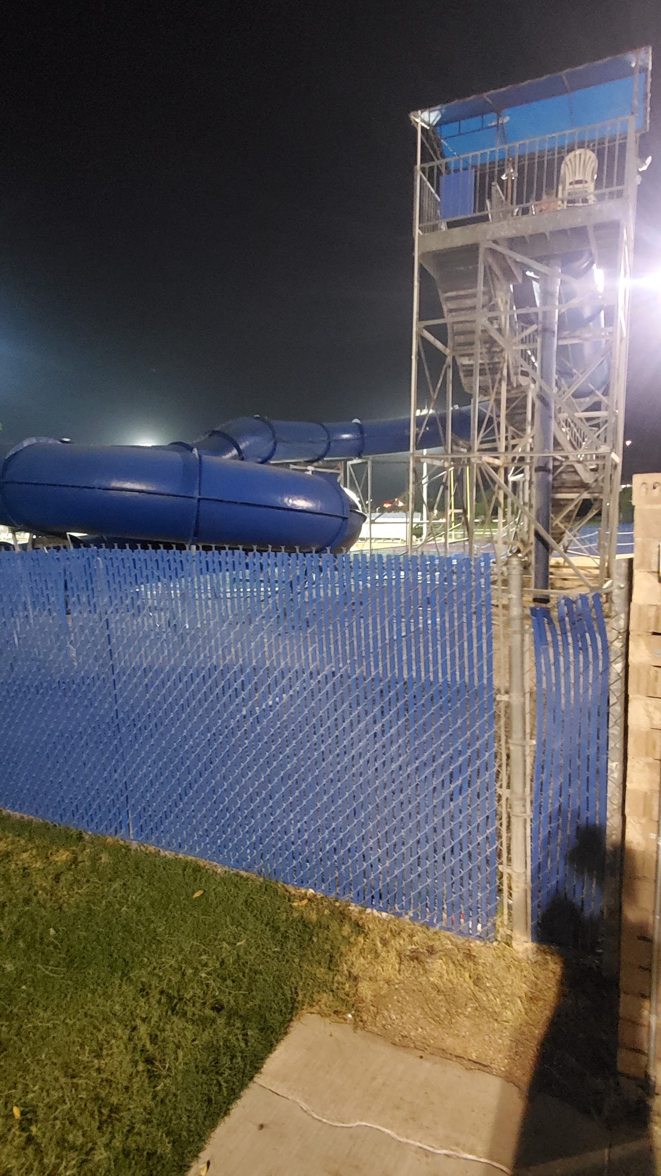 Seasonal outdoor swimming pool featuring a slide.
