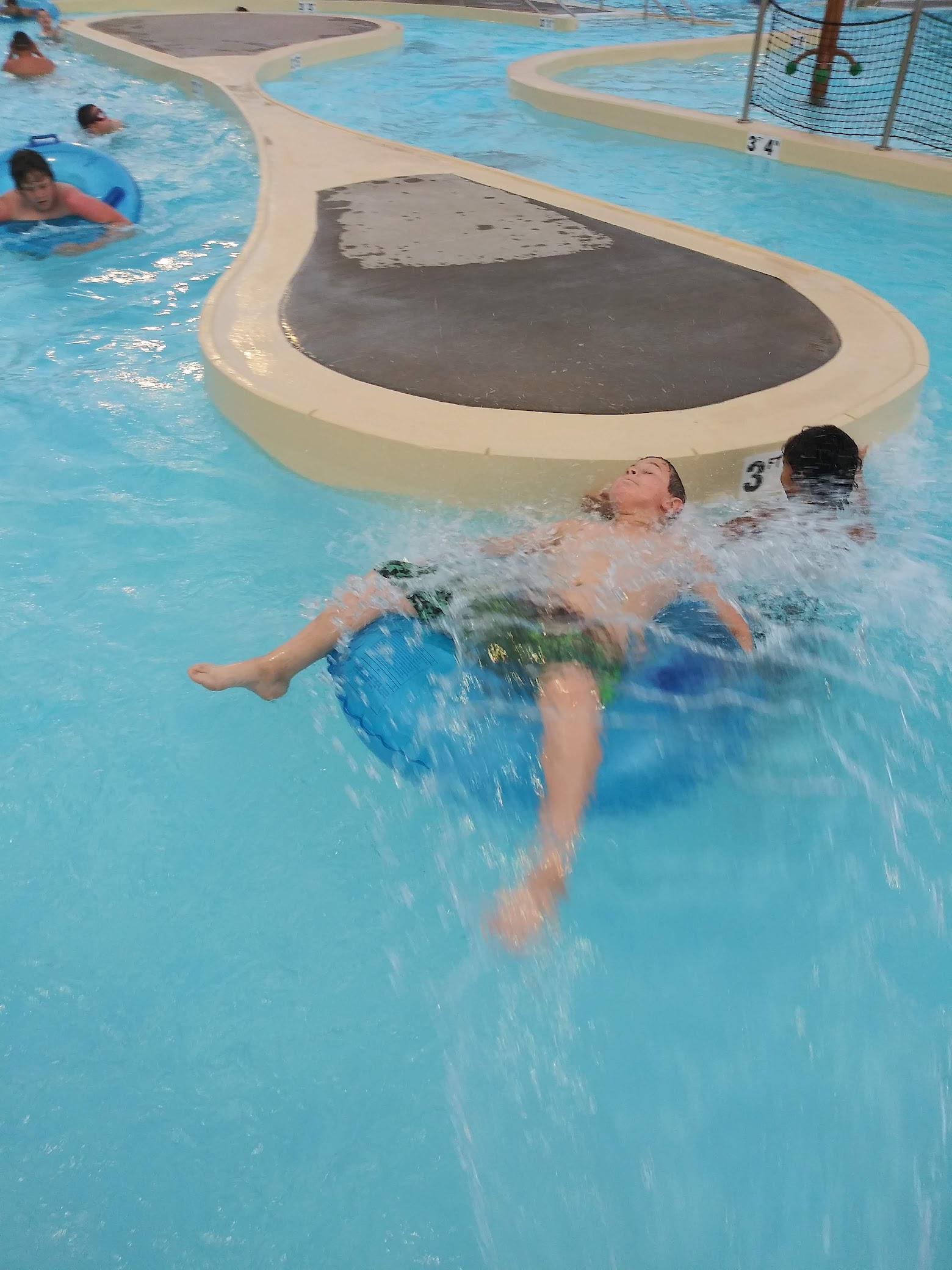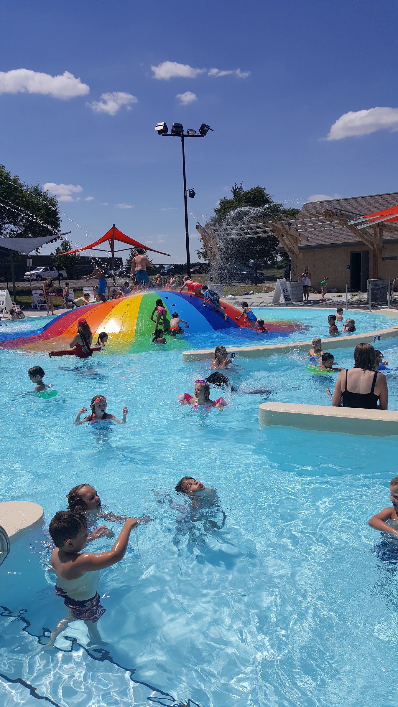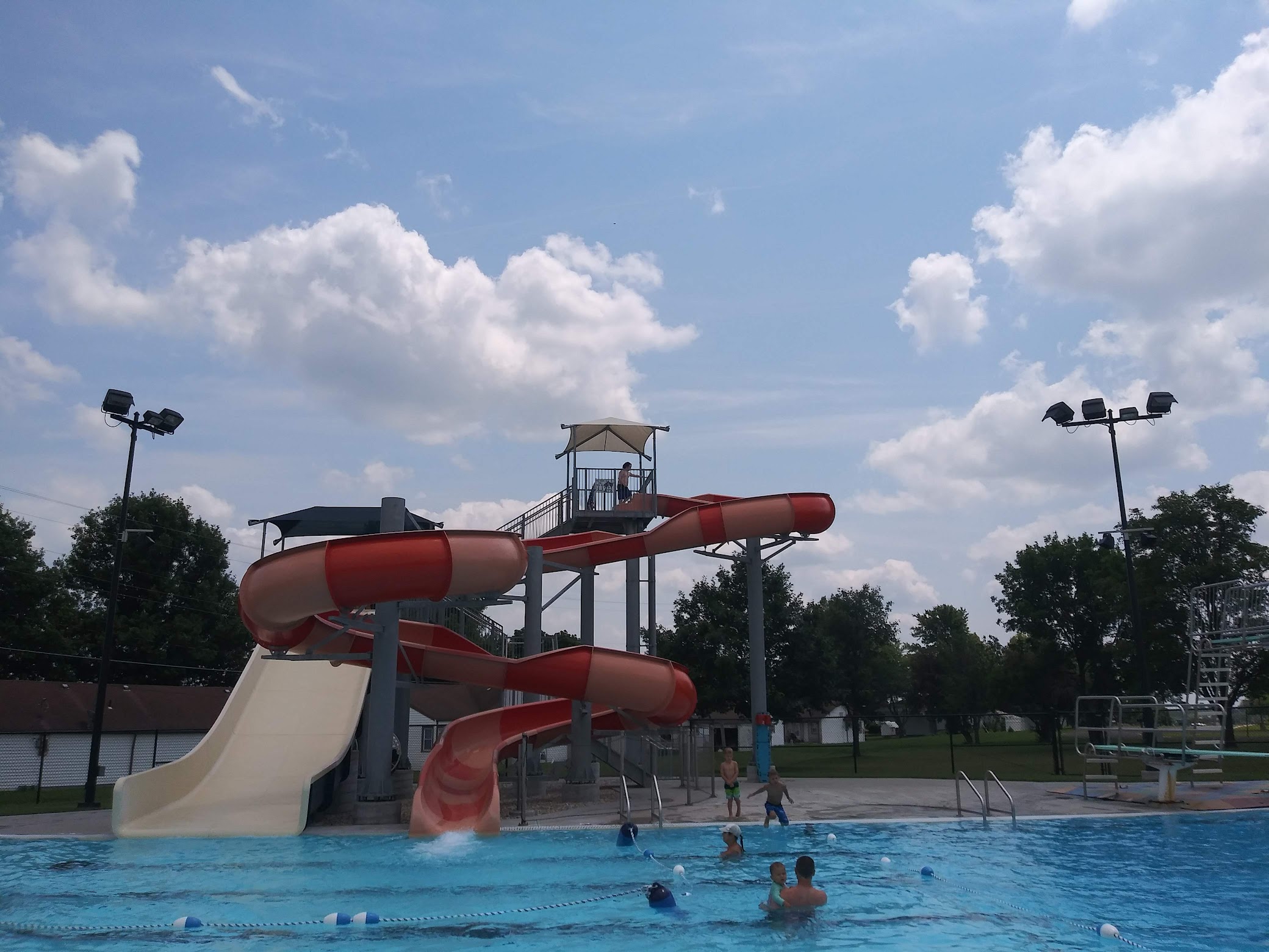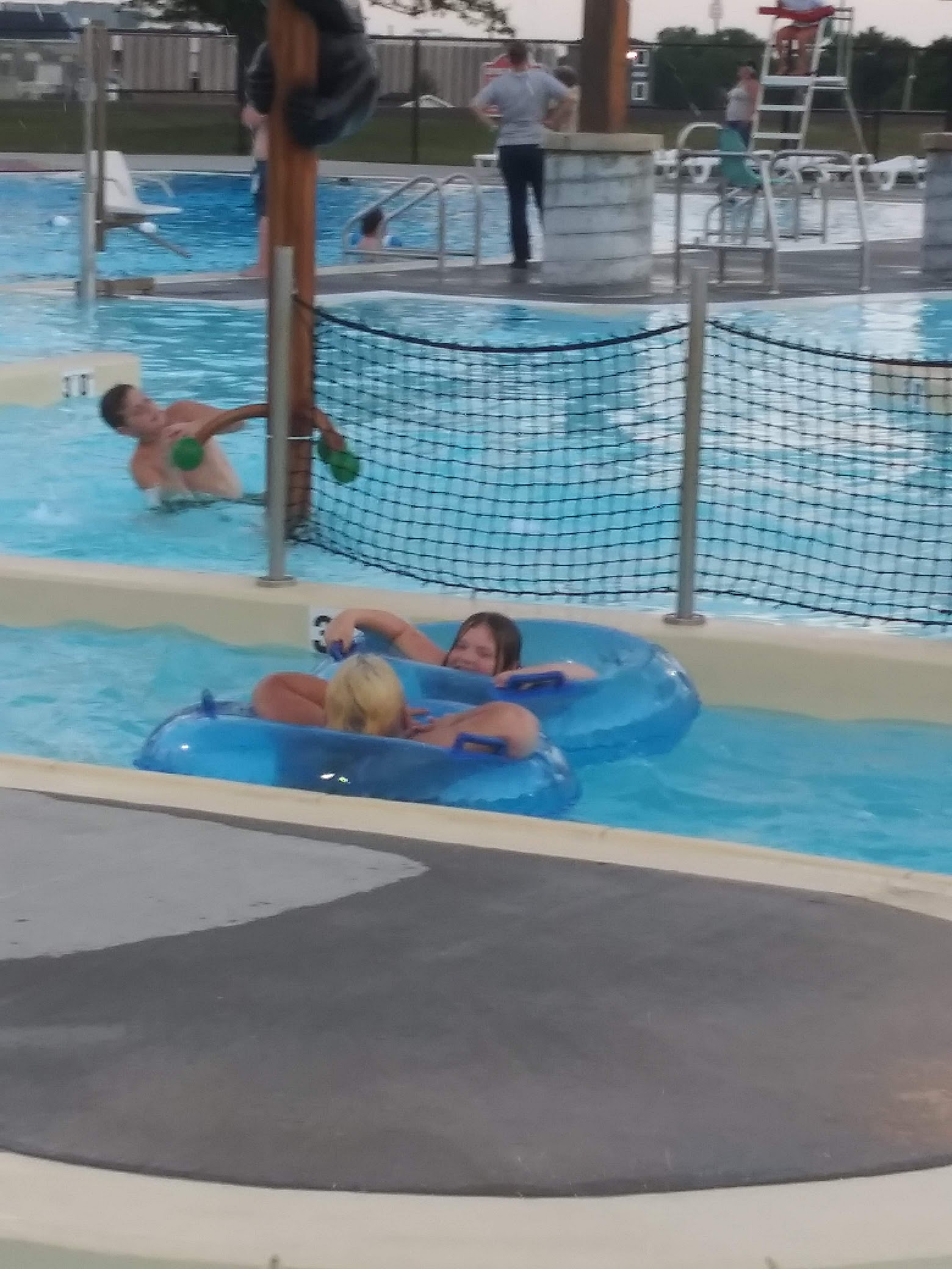 Prices for 2023 are $3 for a child and $5 for an adult to enter. Open 12-5. There is a lot to do here at this pool for younger and older children as well as adults. There is a lazy river which they also provide tubes for. A snack bar with food and drinks. Also a few grocery stores nearby to stop at on the way to the pool for larger meals. Two larger water park style slides & a large play area for the smaller kids.