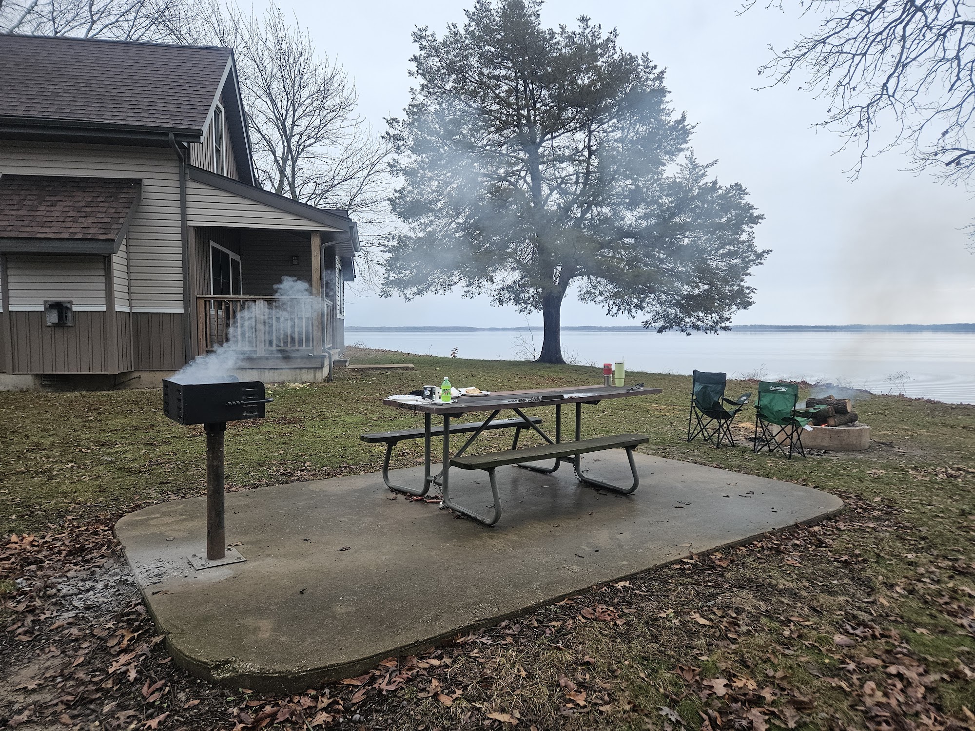 We stayed for 2 nights. The one thing this place has going is that it is right on the lake. It was decently clean feeling. The front door was unlocked when we arrived which is really minor but still made it feel a bit less secure. The water heater didn't work so we got to take cold showers. We tried to contact them but never got a response during our stay. Note, we were gone all of the second day and didnt get back till late. It rained, hard, the entire day. When we went to call it a night, we discovered there was a leak that had caused half of the bed to be completely soaked. With it being late, we called the emergency number in hopes that there might be another cabin empty at the time or at least some dry sheets but no one answered and we weren't even able to leave a voice mail as it hadn't been set up. We decided we could move the bed from under the leak and make it work for just one night. When we moved the bed, there were signs of mold starting to grow where the leak dripped on the floor indicating this was not a new problem. When we finally heard back about the water heater, we were told we should have contacted the emergency number....ya know, the one that didn't work. We were refunded for one night which is nice but I honestly am upset that we even paid for one night there. We tried contacting them again but we're completely ghosted.