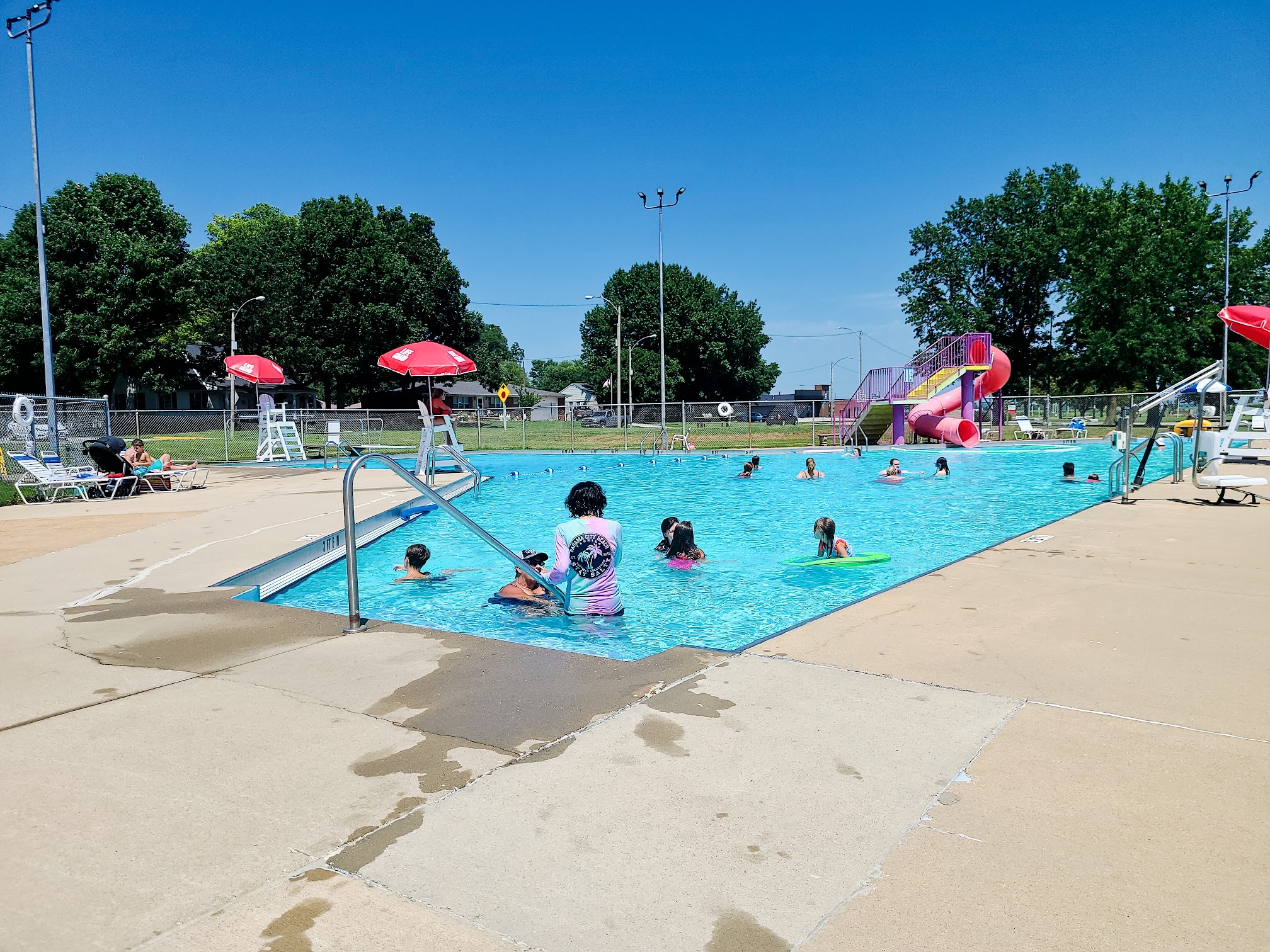What are people saying (AI review summary)? This pool is largely well-regarded by visitors, who appreciate its uncrowded environment, friendly staff, and affordable pricing ($5 per person, $150 for a family summer membership). Key attractions include a deep end with a diving board, a popular tube slide, and a safe kiddie splash pad with a rubber floor. A low-priced concession stand is also available, and the facility is noted for its cleanliness. However, some common criticisms include a scarcity of chairs and tables, and strict rule enforcement, such as requiring treading water skills for diving board access, even for strong swimmers. Despite these minor issues, it's a favorite for many families.