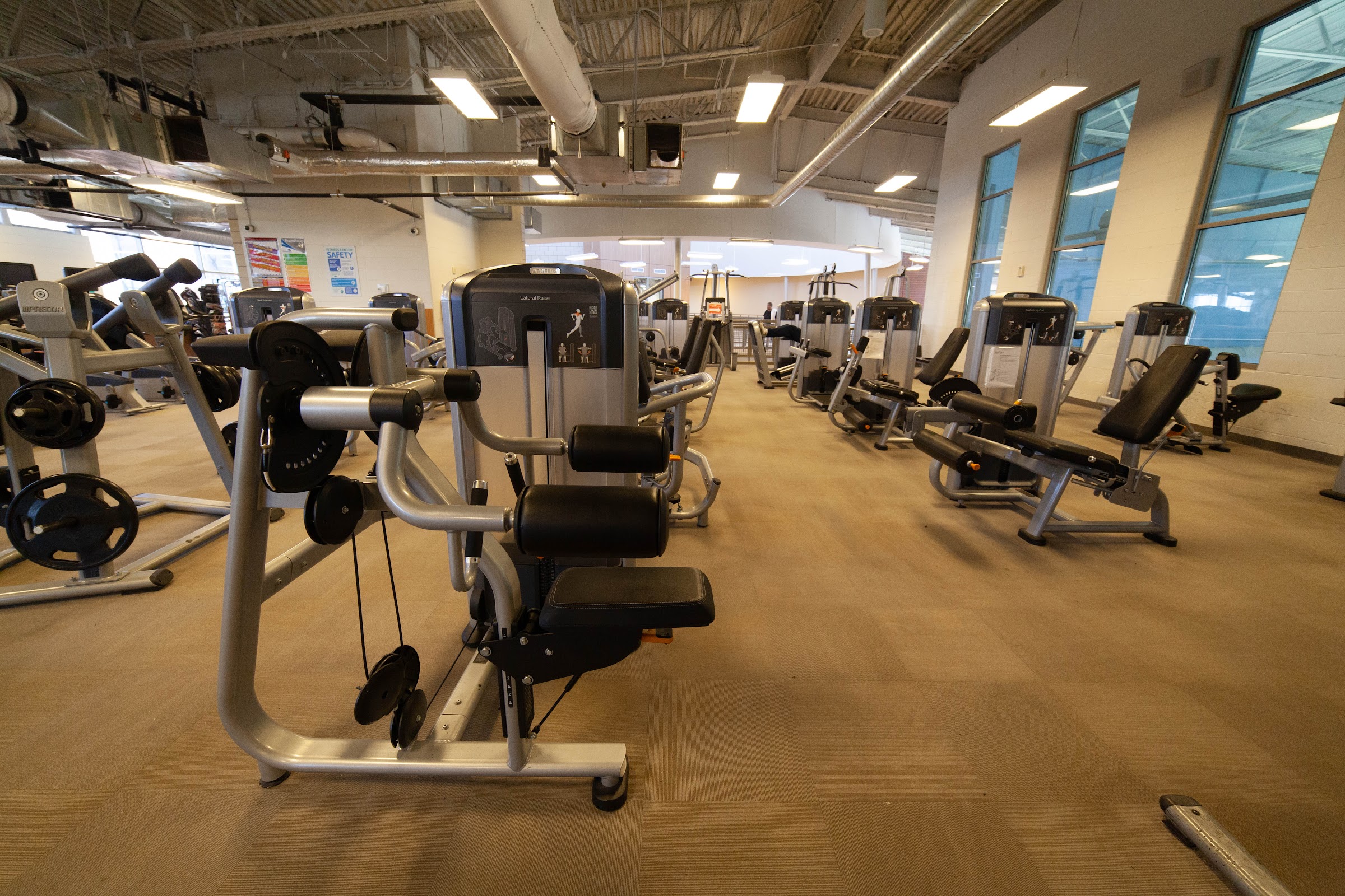 Leisure center featuring a fitness center, an indoor track and a sauna, plus an indoor pool.