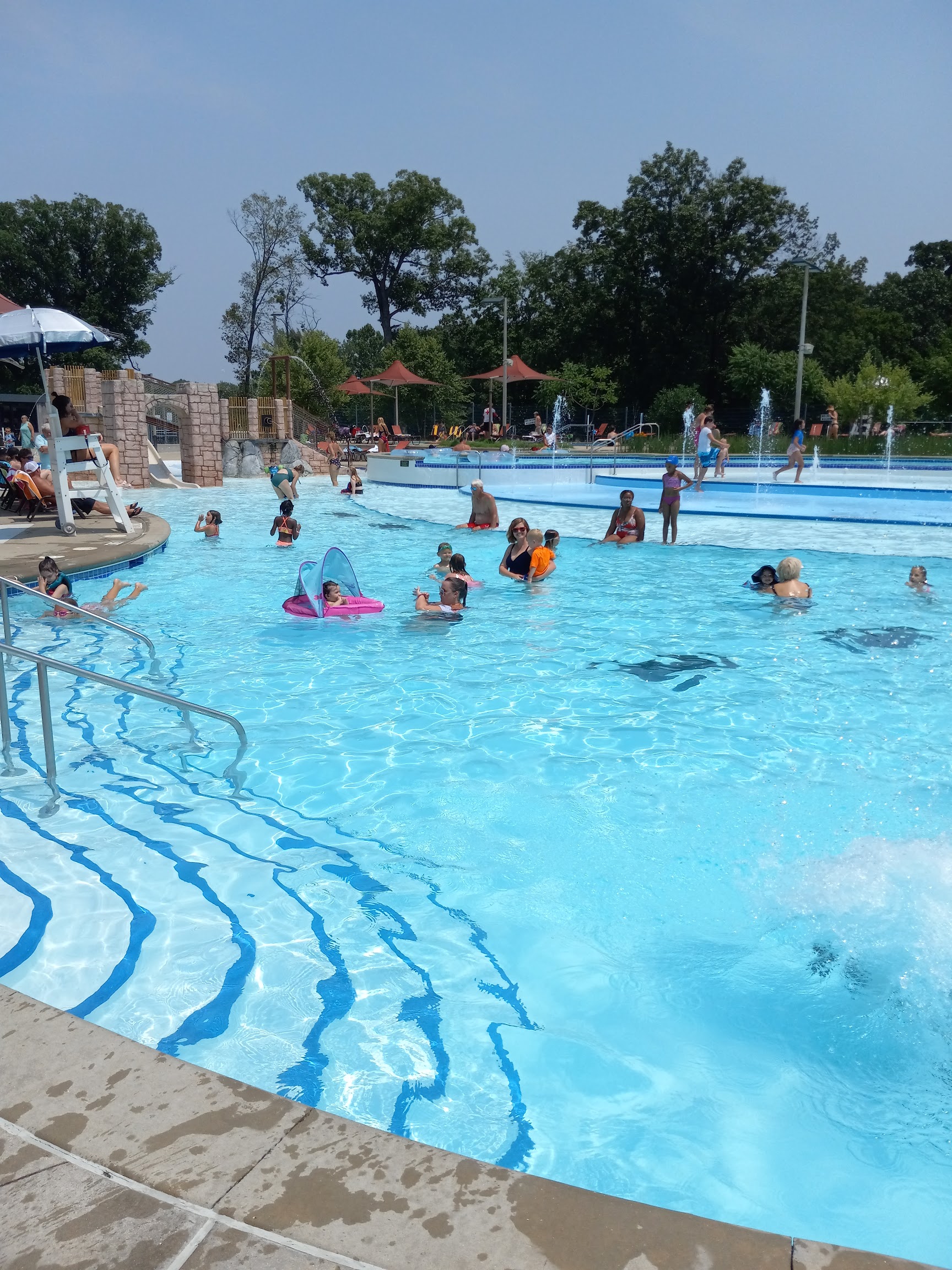 A gem for South County Parks! Pools from 0-12 ft, Lazy River, climbing wall, etc. And a full lunch for $4.50! Open swim starts at noon, but the very little kids area opens at 10:30. And they offer many options for exercise before noon.