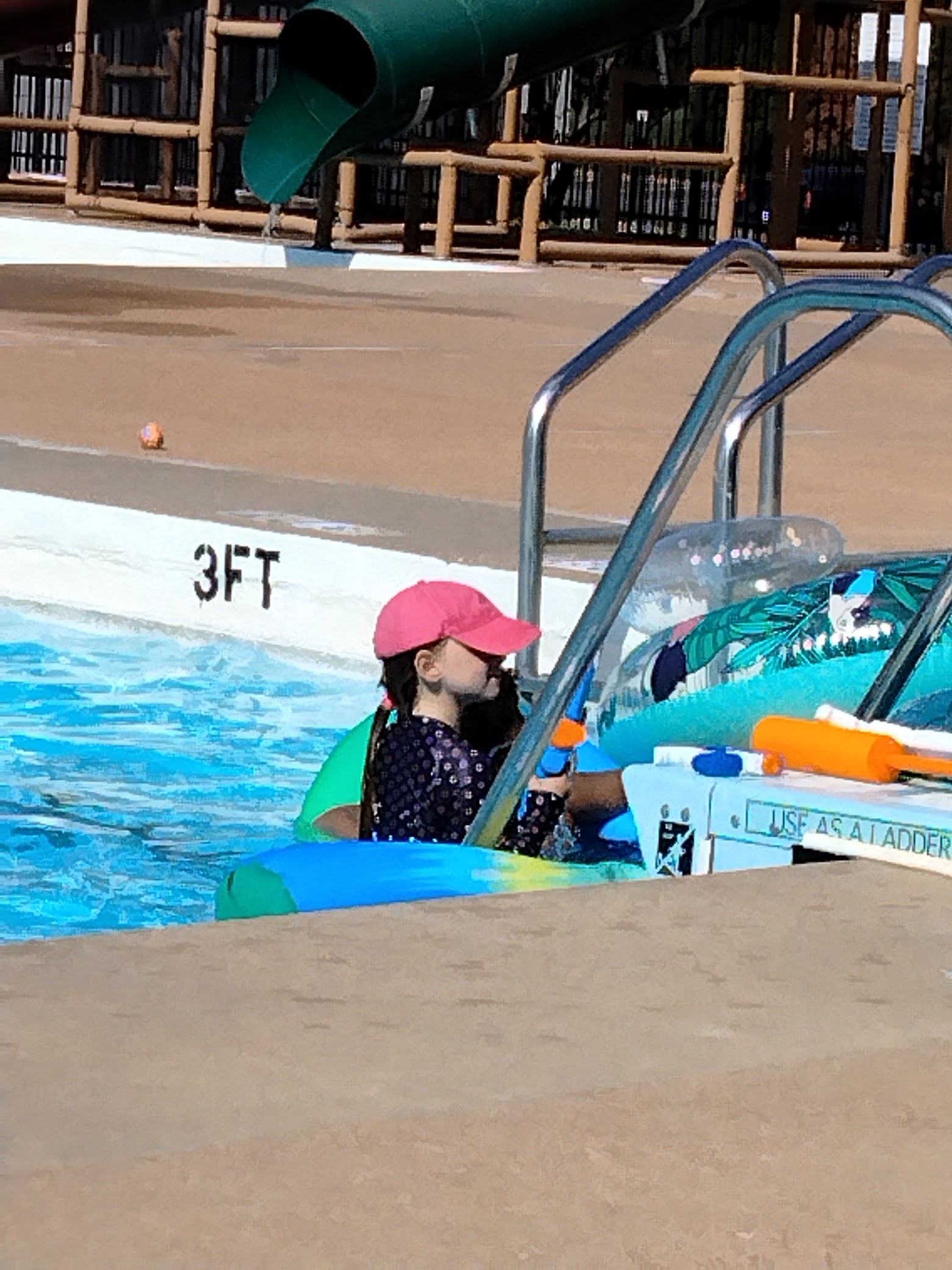 Me personally, this pools 80% good, I mean the rules are stupid and the pool is packed. But my favorite part about this pool are the slides. But the thing is you guys need to make stairs because I go on the slide and I almost end up falling. But if you go on the green slide, it’s so fun and you go super fast! But just make sure to cover your nose. That’s all I have to say. Have a nice day!