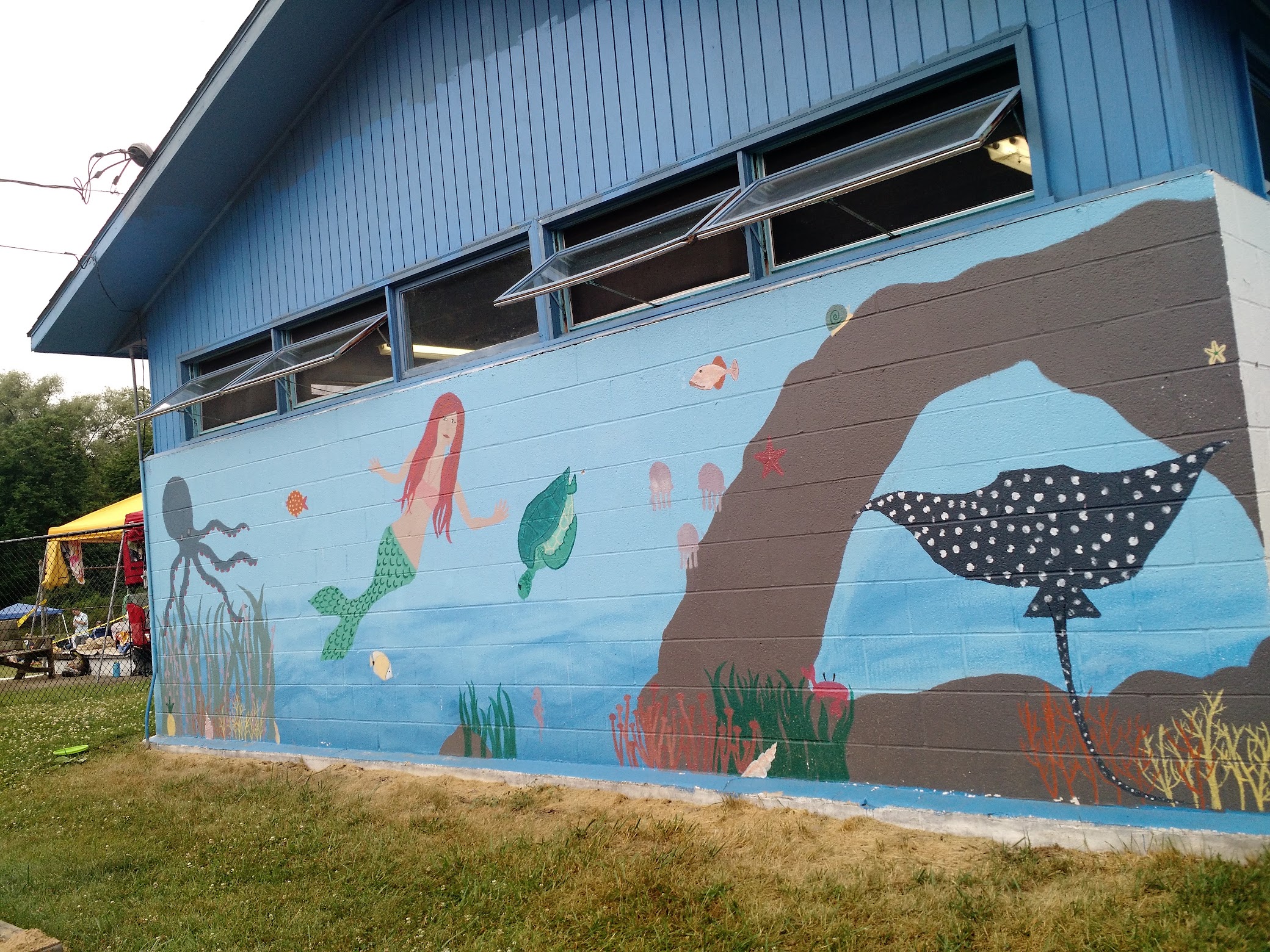 We've never actually gone swimming at the pool. We walk our dogs in the park. It's a bit run-down, but it's a beautiful spot.