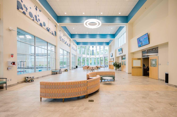 The aquatic center maintains specific temperatures for its different pools: the Community Pool is kept at 84°F (29°C), the Therapy Pool is set at a warm 92°F (33°C), and the Competition Pool typically ranges from 79-80°F (26-27°C).
