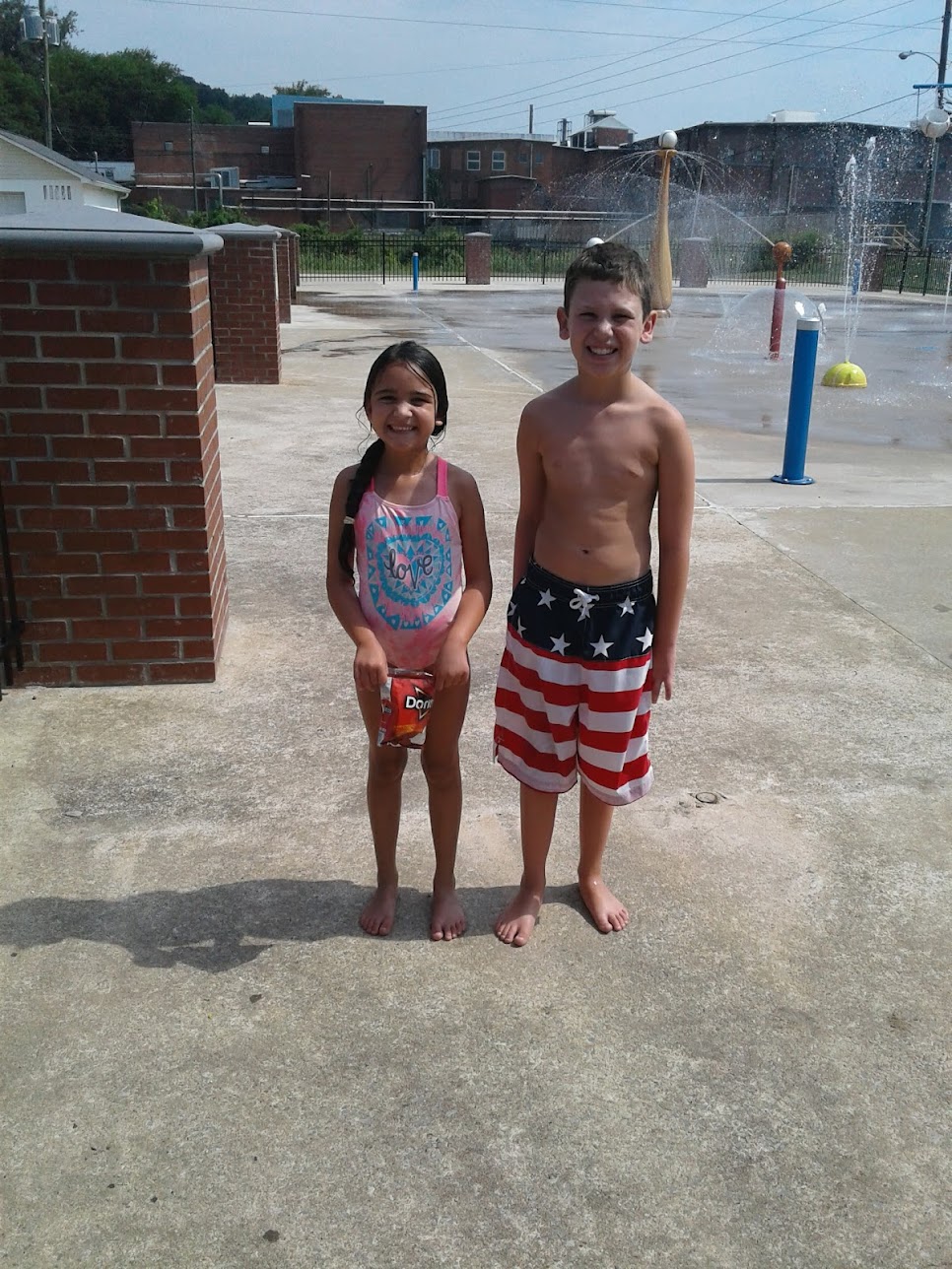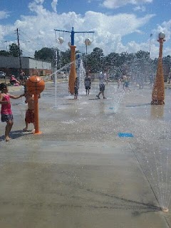 Went with my son only one fountain was on and prepare to bust your tail on some cement even though only one fountain was on we still had a good time but seriously who thought that that paint was a good idea?!?! We had to leave because my son fell from the paint and broke his nose and when I was walking over to pick him up I fell and sprang my wrist and bruised my hip pretty bad. This place needs to be shut down until they can fix the paint issues also WHO THOUGHT IT WAS OKAY TO TAKE OFF THE GATES?!?! the whole reason I use to come here almost everyday is because of the gates and my son couldn’t run off. Whoever is over the splash pad needs to find a different job.