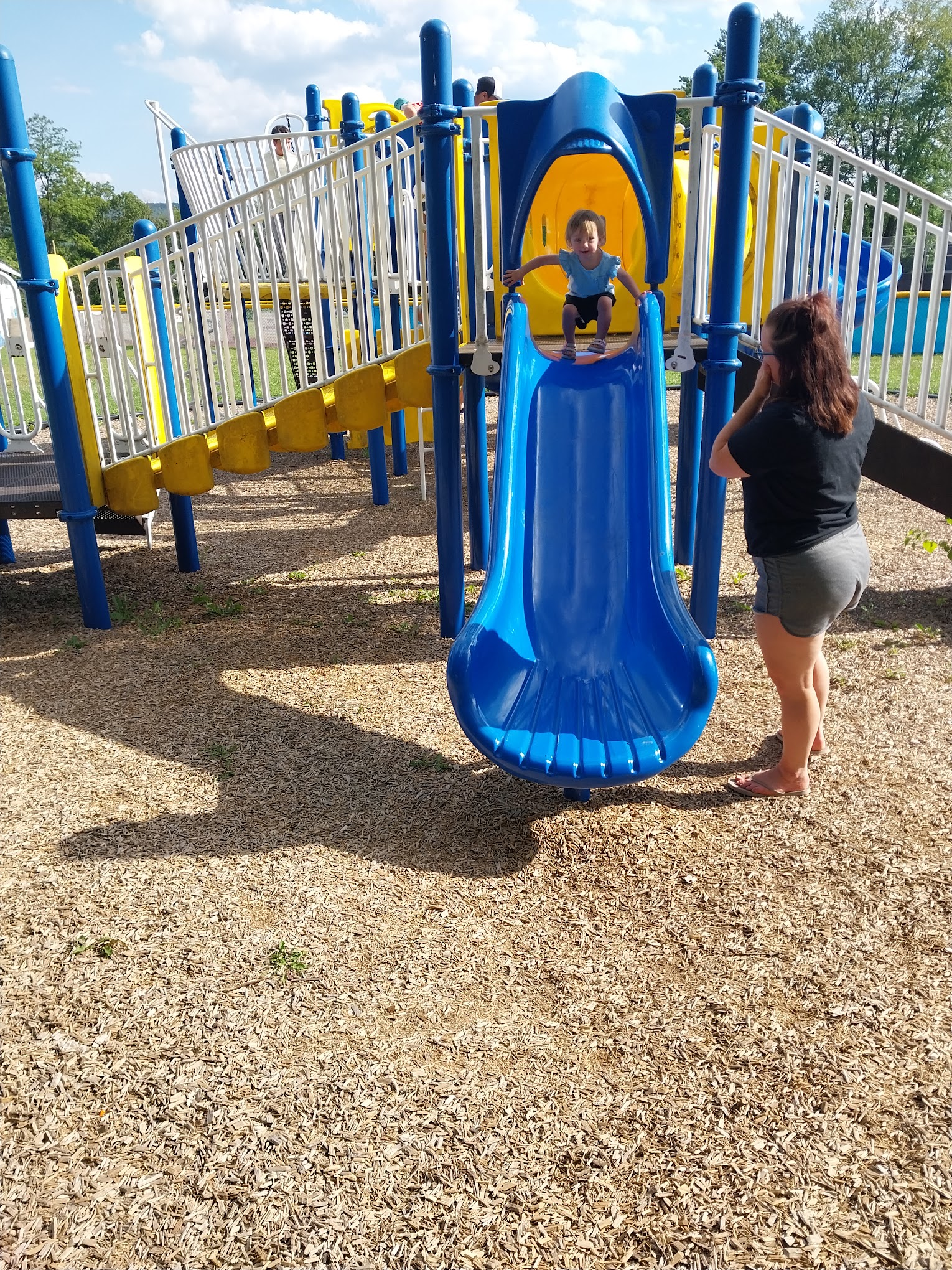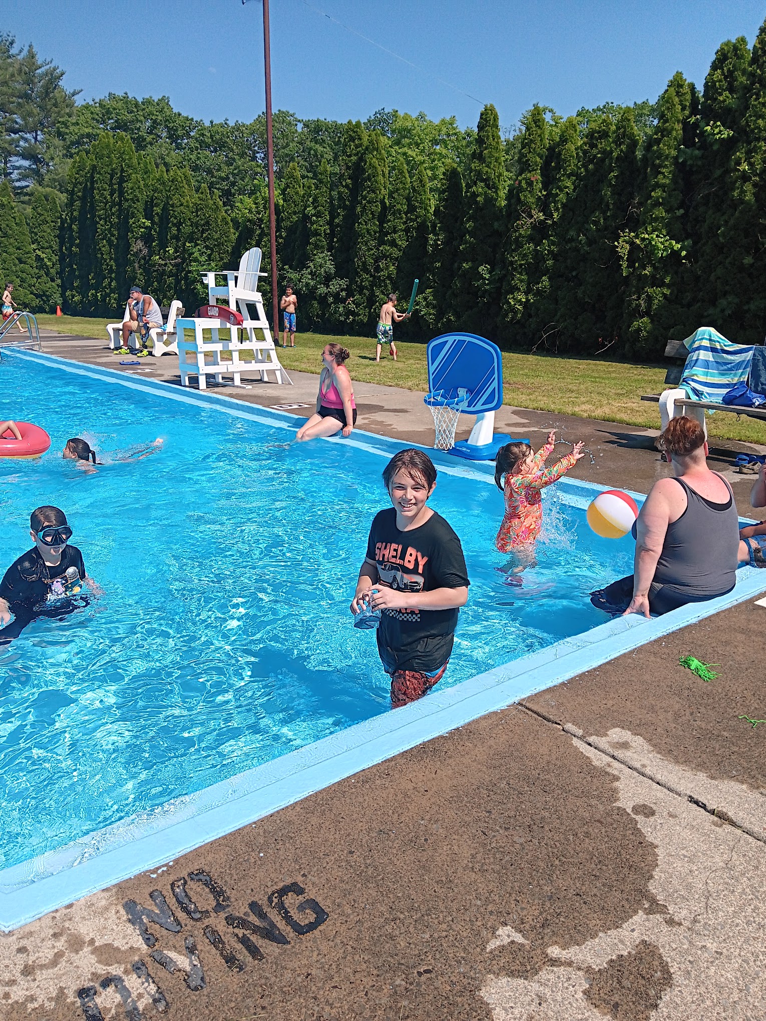 The old home week carnival was there. We went to eat. In the summer time the community pool is open. They also have a playground for children.