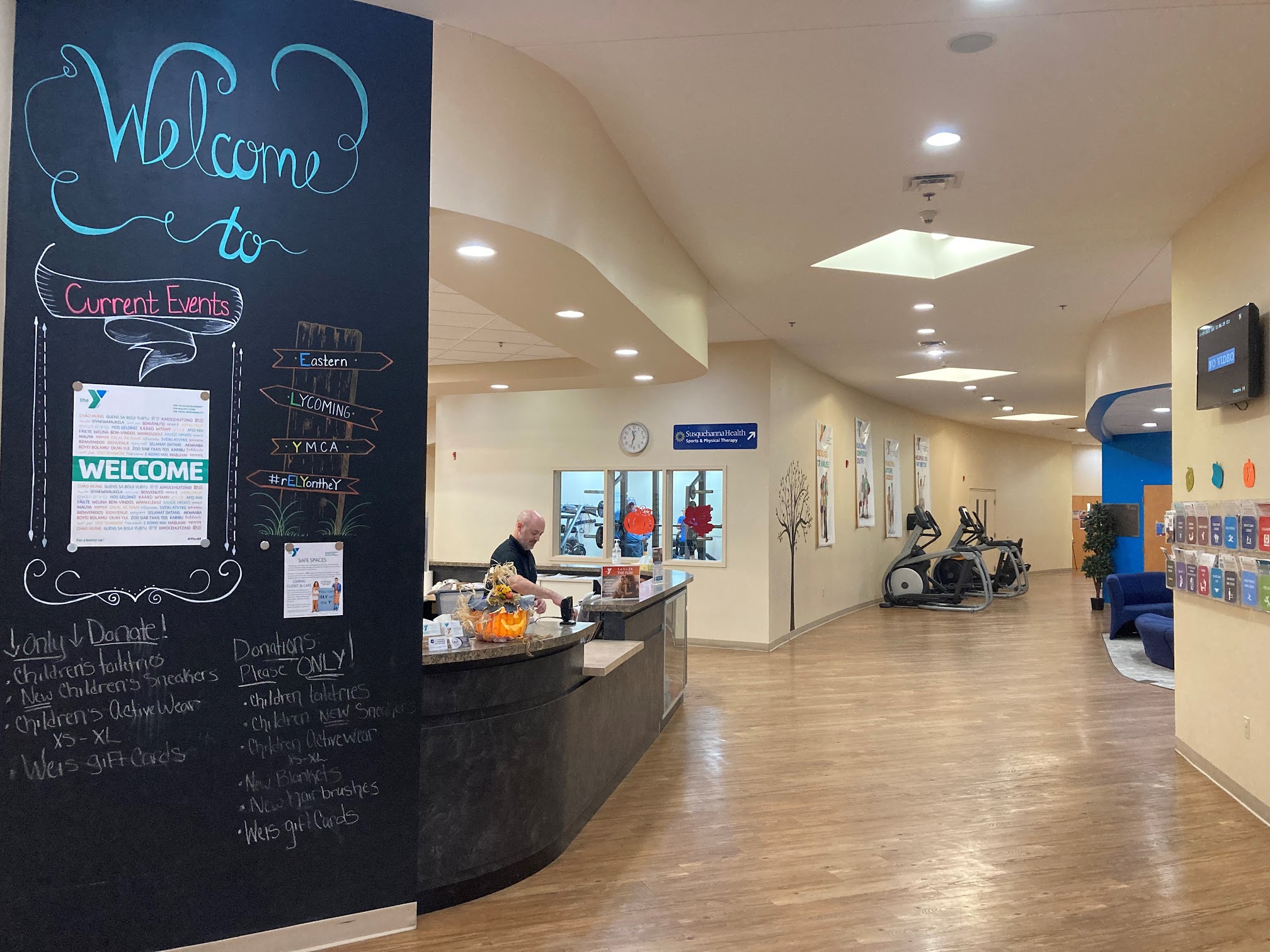 This YMCA is not very clean. The changing rooms always seems wet and feels dirty and smells musty. The entire gym is rather warm as well. The equipment is very outdated and crammed together. Only 1 of each machine. Distorted mirrors that do not go low enough to see your squat form. 1 very old smith machine that doesnt go to the floor so you have to put a stool under it to deadlift. Free weight section is tiny. This gym needs a serious makeover and the actual "gym" part needs expanded. Very worn down equipment. Some plates are busted up and have sharp pieces. Leg curl machine isnt made for people with small legs. The mats by the cables are always very dirty. Perhaps get rid of it and hang them on the walls like PF does and people can get them down as needed to stretch and do abs and clean them when they are done. Music is always blaring and I can hear it over my headphones. For paying 40 dollars a month, you would think they would actually expand the "gym" section. PF is only 25 dollars a month and all of their equipment is in tip top shape. So it can't be a money issue. If I lived close to a PF, I would go there instead. I think this YMCA takes advantage of being the only decent gym in the Muncy area so people have no other choice to go there. They neglect their equipment because people will continue to pay reguardless and not say anything about the conditions.