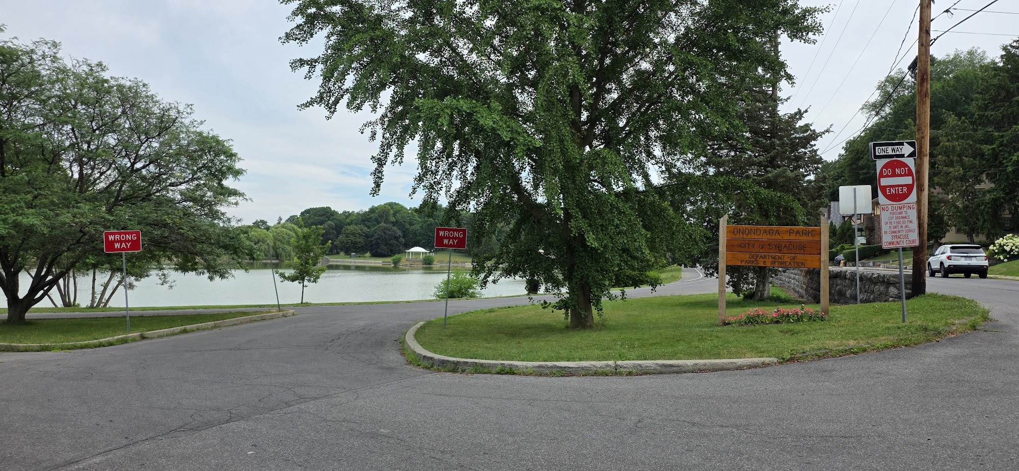 I found a nice spot in the shade while the kids played in the sun. I like having the nice flat area for us to play Frisbee, but also having the hills and the picnic area not too far away, which adds to the already gorgeous scenery. Other parents and grandparents that were there with their kids were very friendly and we held very nice conversation while all the kids played together. All in all, it was a very nice afternoon. Oh I almost forgot to there was a very nice breeze the whole time we were there. No garbage in sight. I give my visit to Onondaga Park five stars today.
