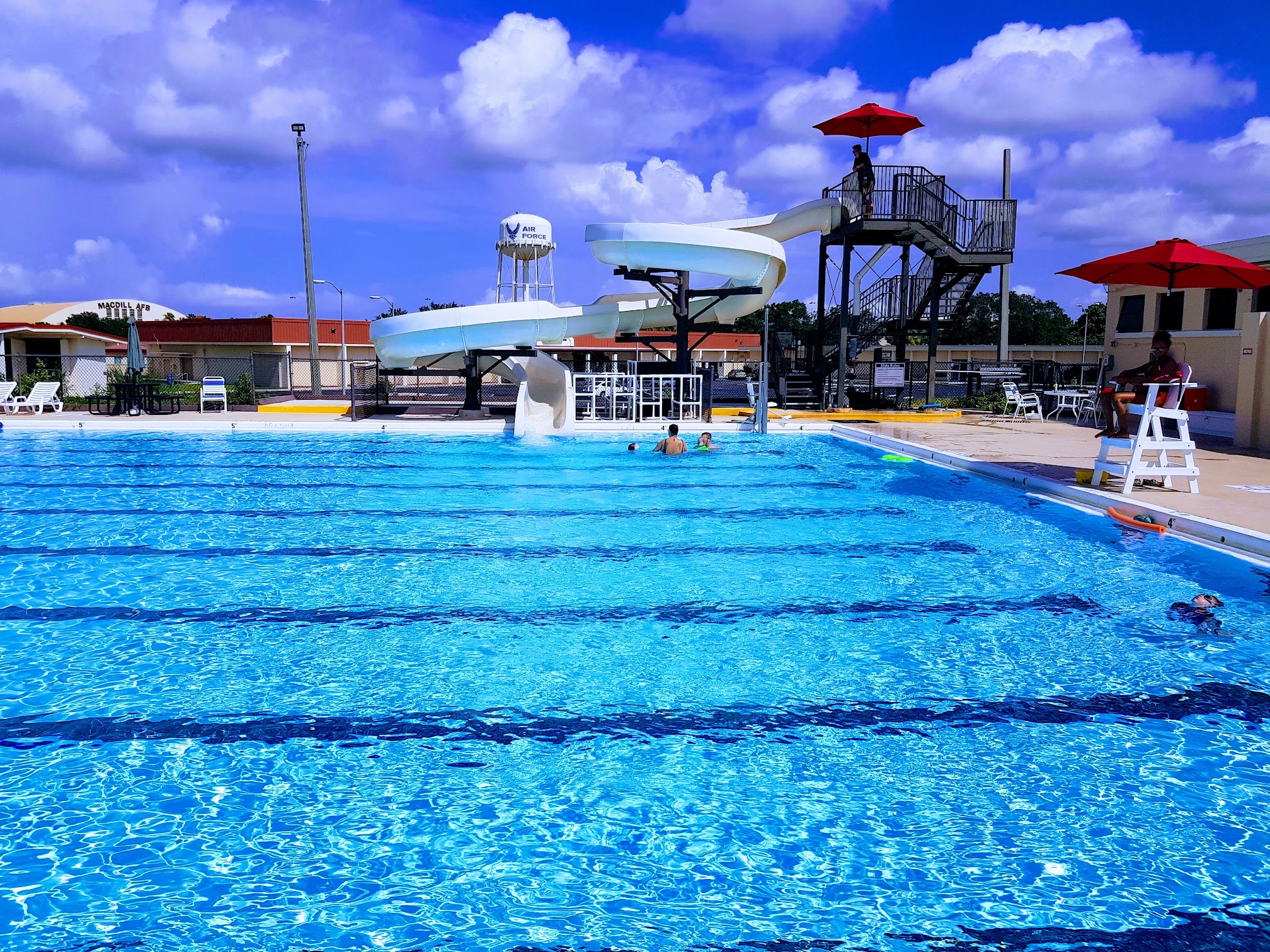 Great pool. But, for the 2019 season the waterslide is broken. This pool is a great asset for MacDill that can be share by all families. Unfortunately like most Air Force facilities the swimming pool is a lower priority than the golf course and doesn't get the support it needs. Better support would allow it to stay open longer, as well as better weekend hours.