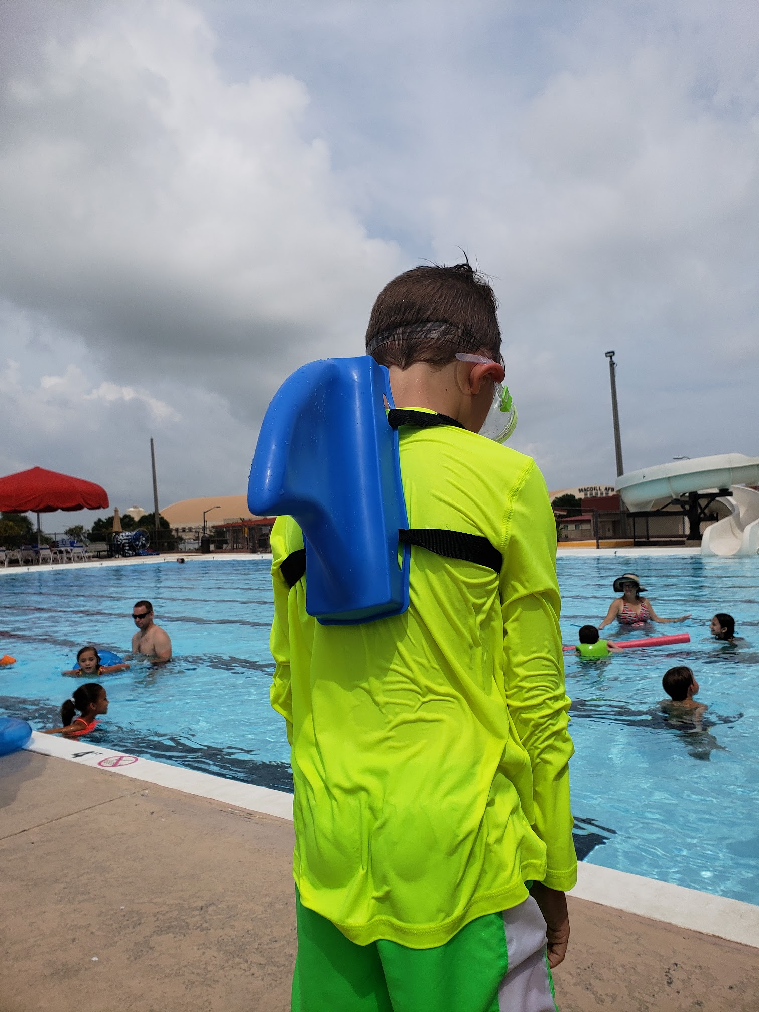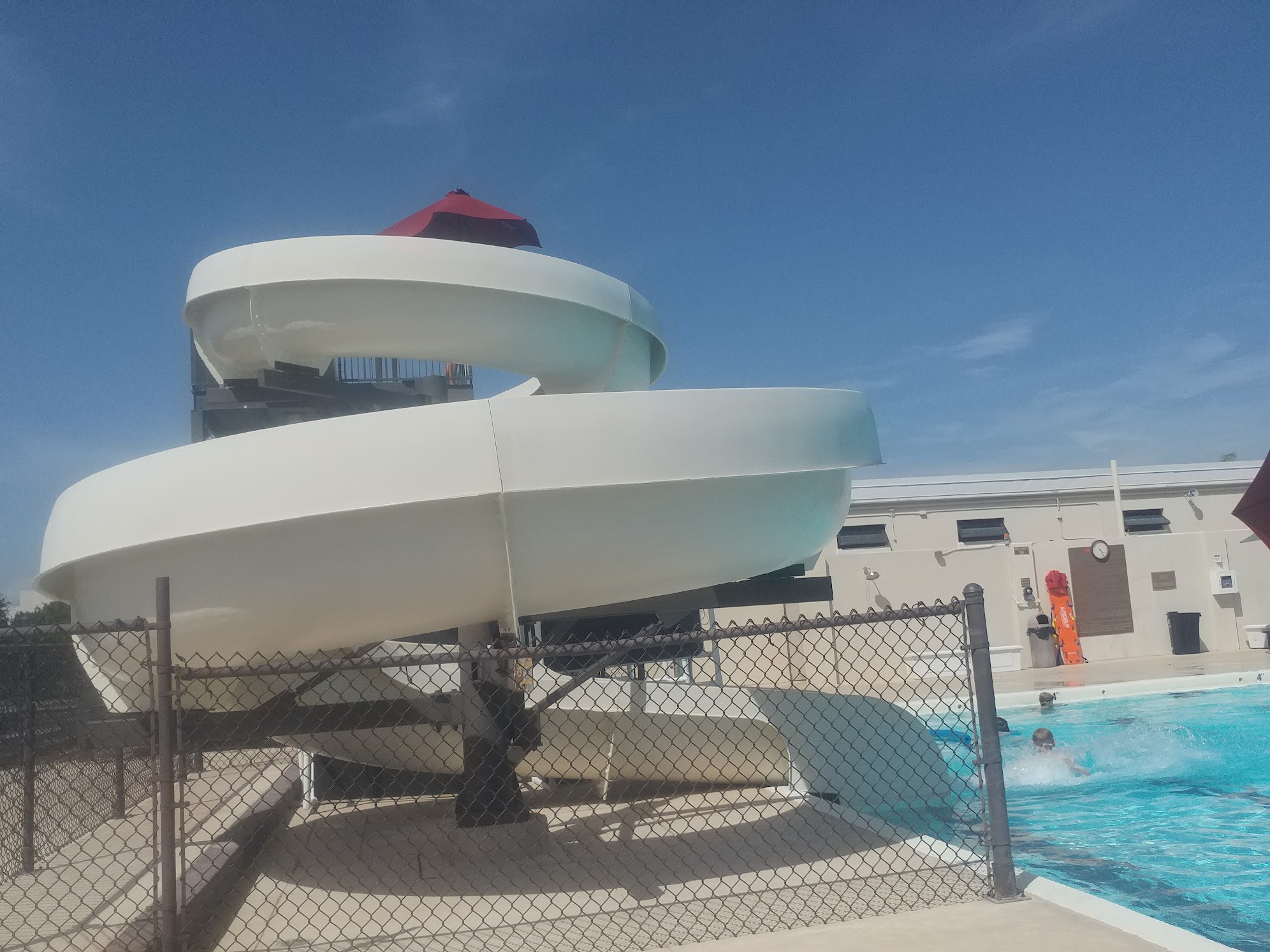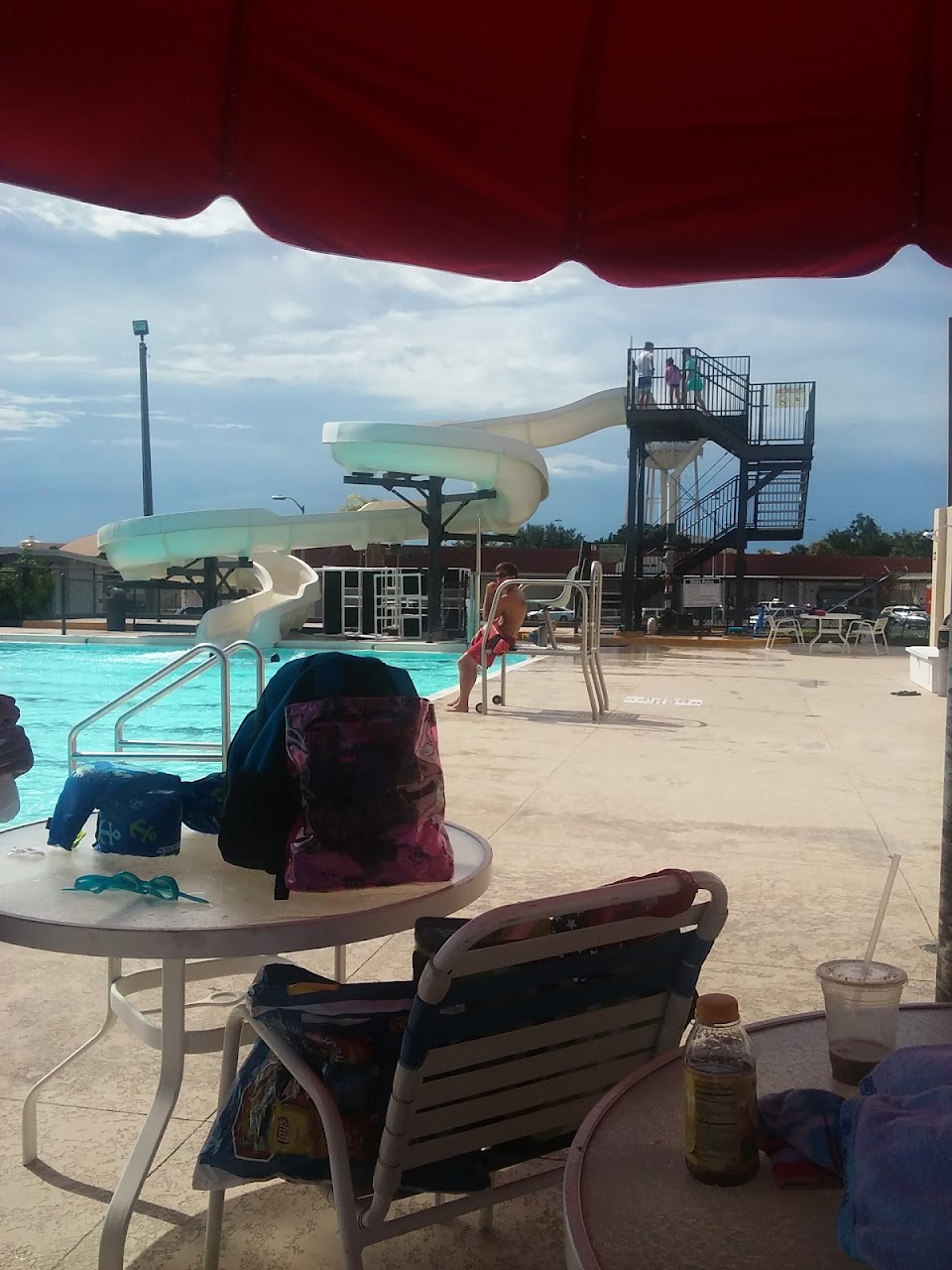 Love the pool Clean and friendly staff. Only complaint is the rule for the water slide. My kid has to swim from one end up pool to the other. Would be fine normally but this is not your average size pool. Then after they have to tread water for 1 minute. The parents are right there it shouldn't be this complicated. My kid can swim the length of a normal size pool. Shouldn't have to tread water just for a slide he can touch the bottom and push up. All he does is dive when we go to either pool on base. He can go to other water parks and go down bigger slides no problem. Other then that it's a great place