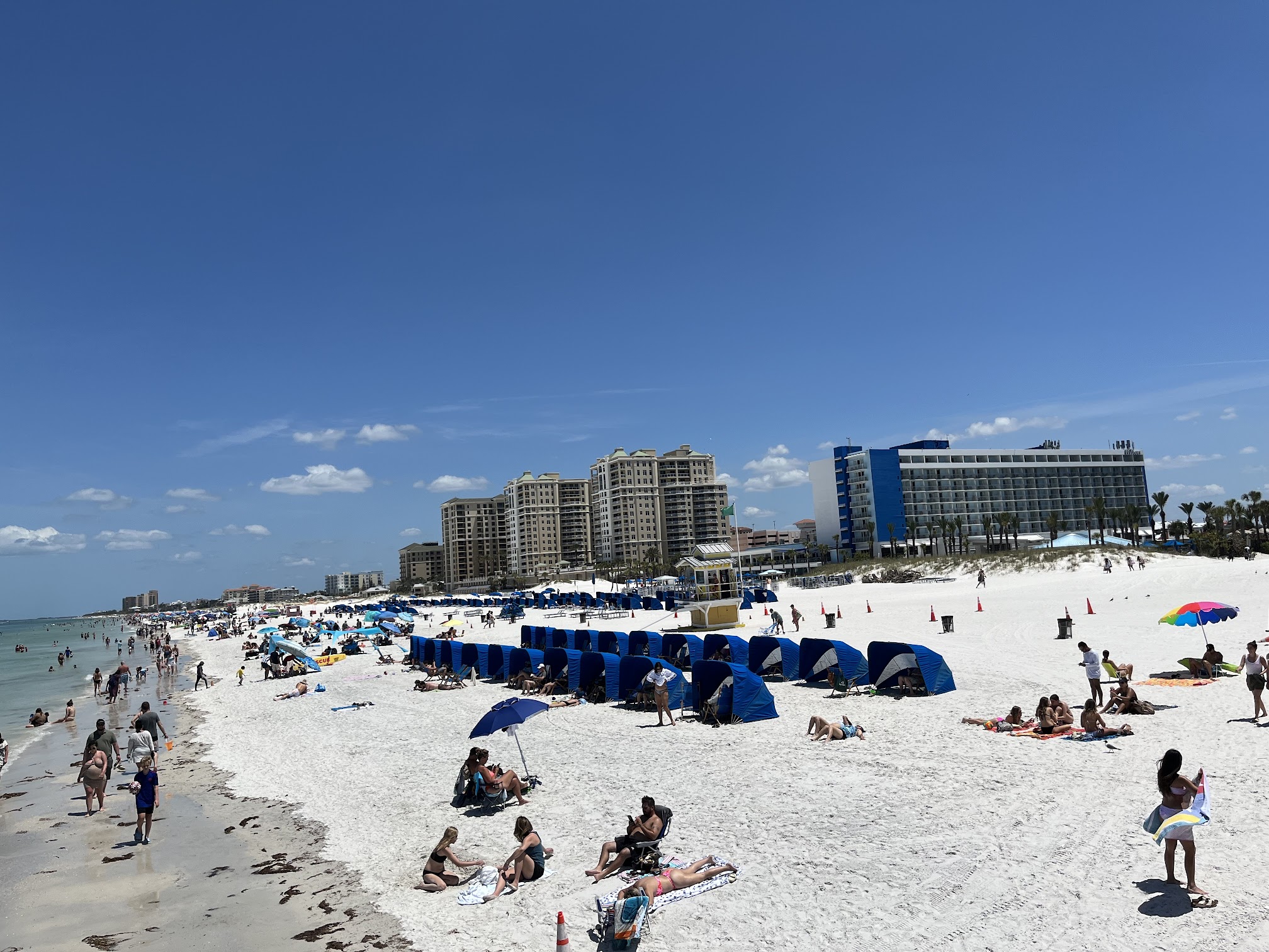 What are people saying (AI review summary)? The water attractions at Clearwater Beach, including tall waterslides, water balls, and inflatables, receive mixed reviews. While children generally enjoy the activities and some find the cost acceptable for a vacation, significant criticisms include an inconvenient ticket system (requiring tickets to be brought back to a counter), highly variable staff behavior ranging from very nice to extremely rude and impatient, and inflatables becoming too hot for afternoon use. The 'water slide' is noted to be merely sprayed down, sometimes leading to sand in the face. Despite these issues, the broader Clearwater Beach area, especially around Pier 60, is highly praised as an iconic Florida destination, lauded for its stunning white sand, clear Gulf waters, free access, lively atmosphere with performers, and overall cleanliness, though it can experience crowding and expensive parking.