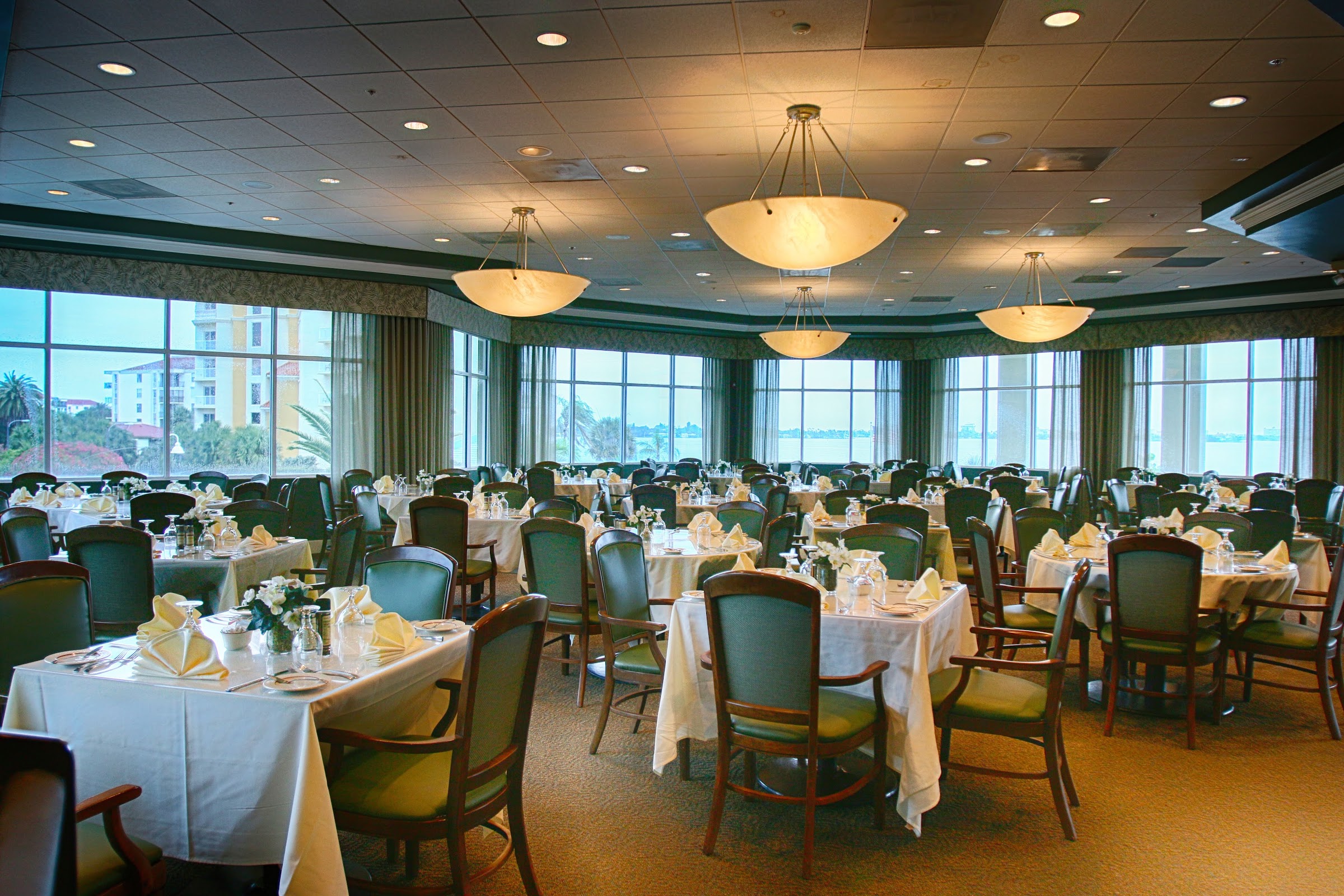 What are people saying (AI review summary)? text: "People say this country club offers a nice collection of restaurants and bars, including a bar and grill, Asian fusion restaurant, and tiki bar. They highlight the pleasant outdoor dining options with views of a pond and fountain, and the free parking. They also like the nice breeze off the gulf, especially during hot weather." language_code: "en-US"