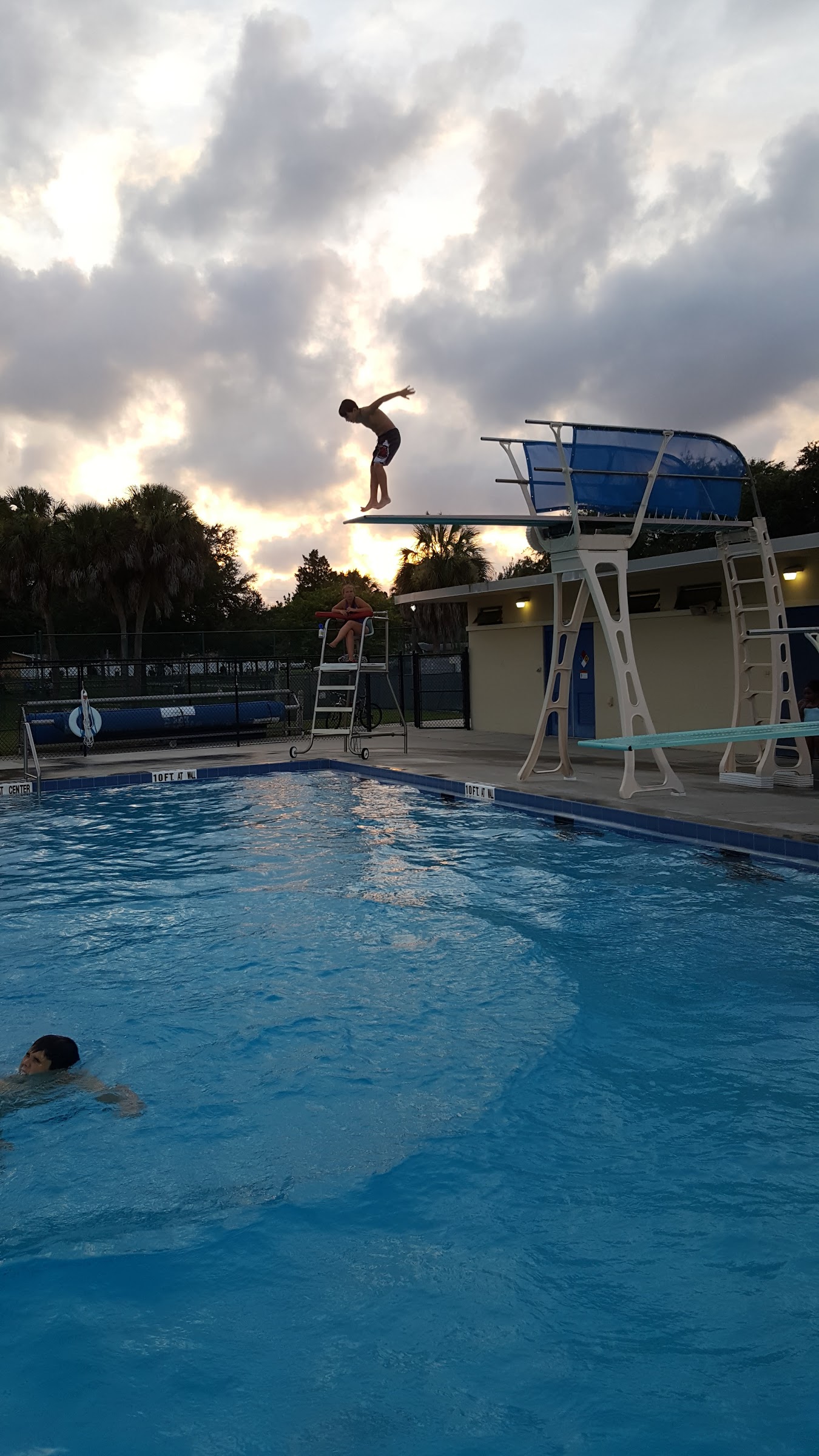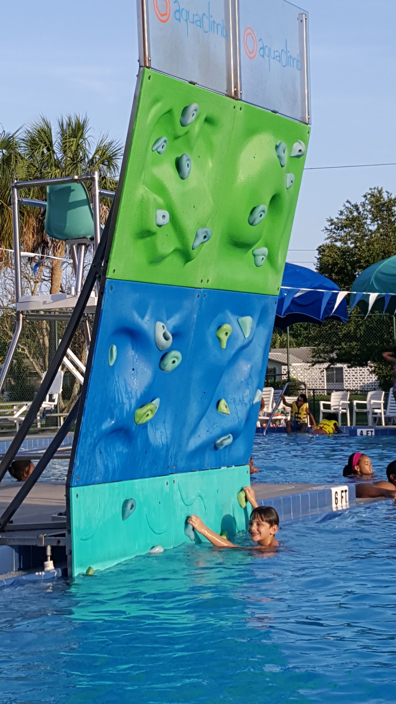 What are people saying (AI review summary)? This swimming facility is generally praised for being beautiful, with a large, warm pool, clean deck, diving board, and climbing walls. There are new water slides, though some visitors miss the old ones and debate the speed and quantity of current slides. Positive notes include well-mannered camp kids and a helpful male guard. However, common criticisms include limited operating hours, unhelpful or rude staff (especially at arrival and during safety incidents), a strict lightning policy leading to early closures without refunds, and a hot deck. Some visitors also expressed disappointment over the removal of previous slides and restroom art.