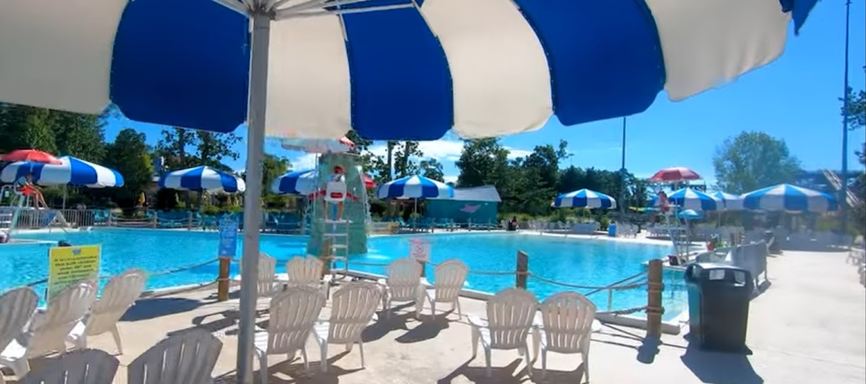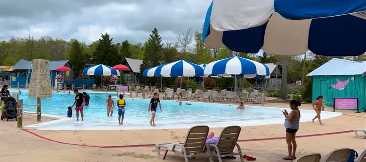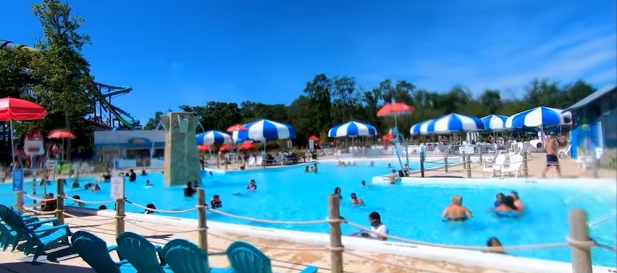 Calypso Springs is a 100,000-gallon tropical-themed leisure pool and water play area located within Six Flags Great Adventure in Jackson Township, NJ. It serves as a relaxing oasis with lounge chairs, giant misters, and cabanas, offering a serene escape for guests to cool off and unwind.