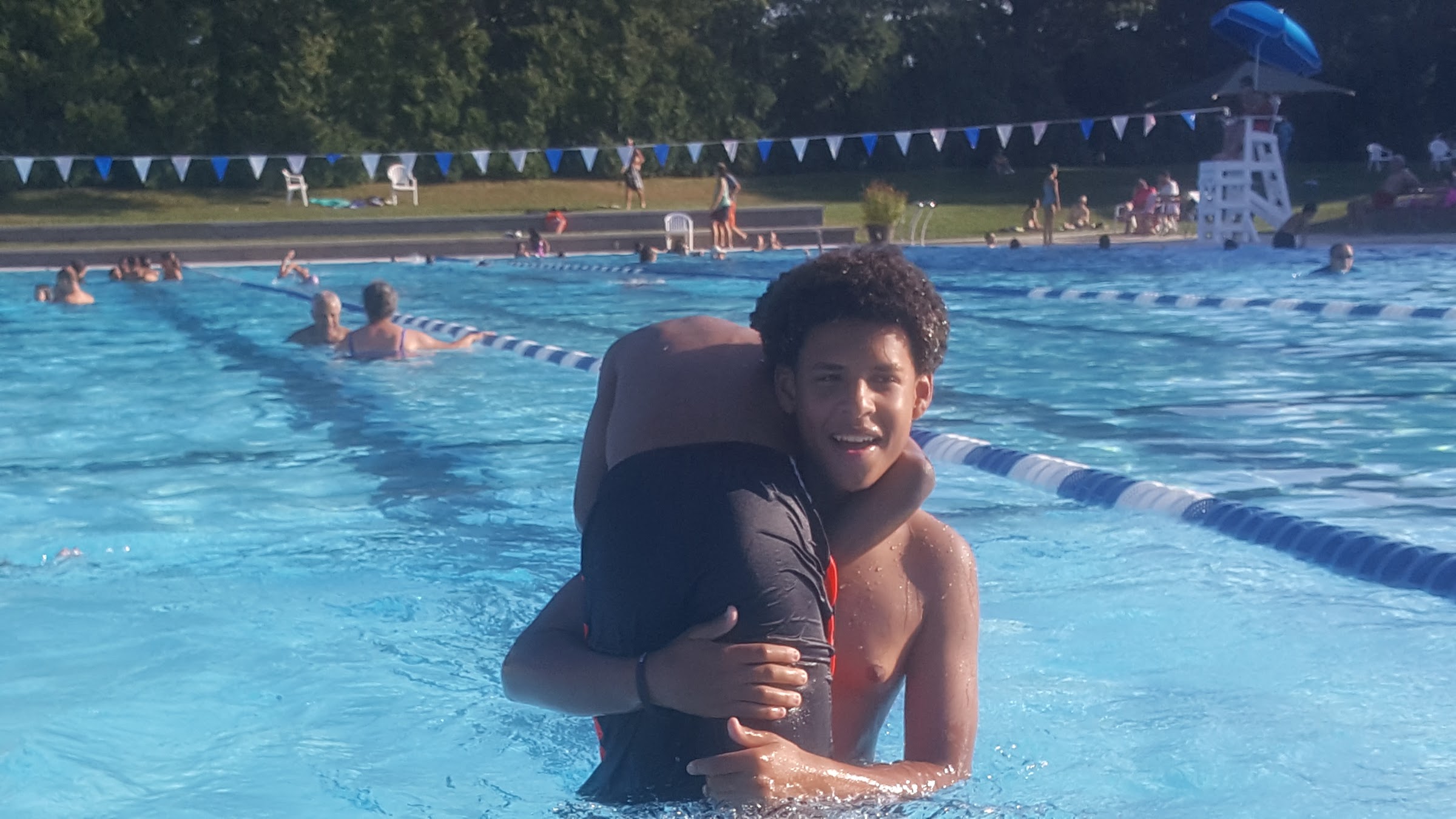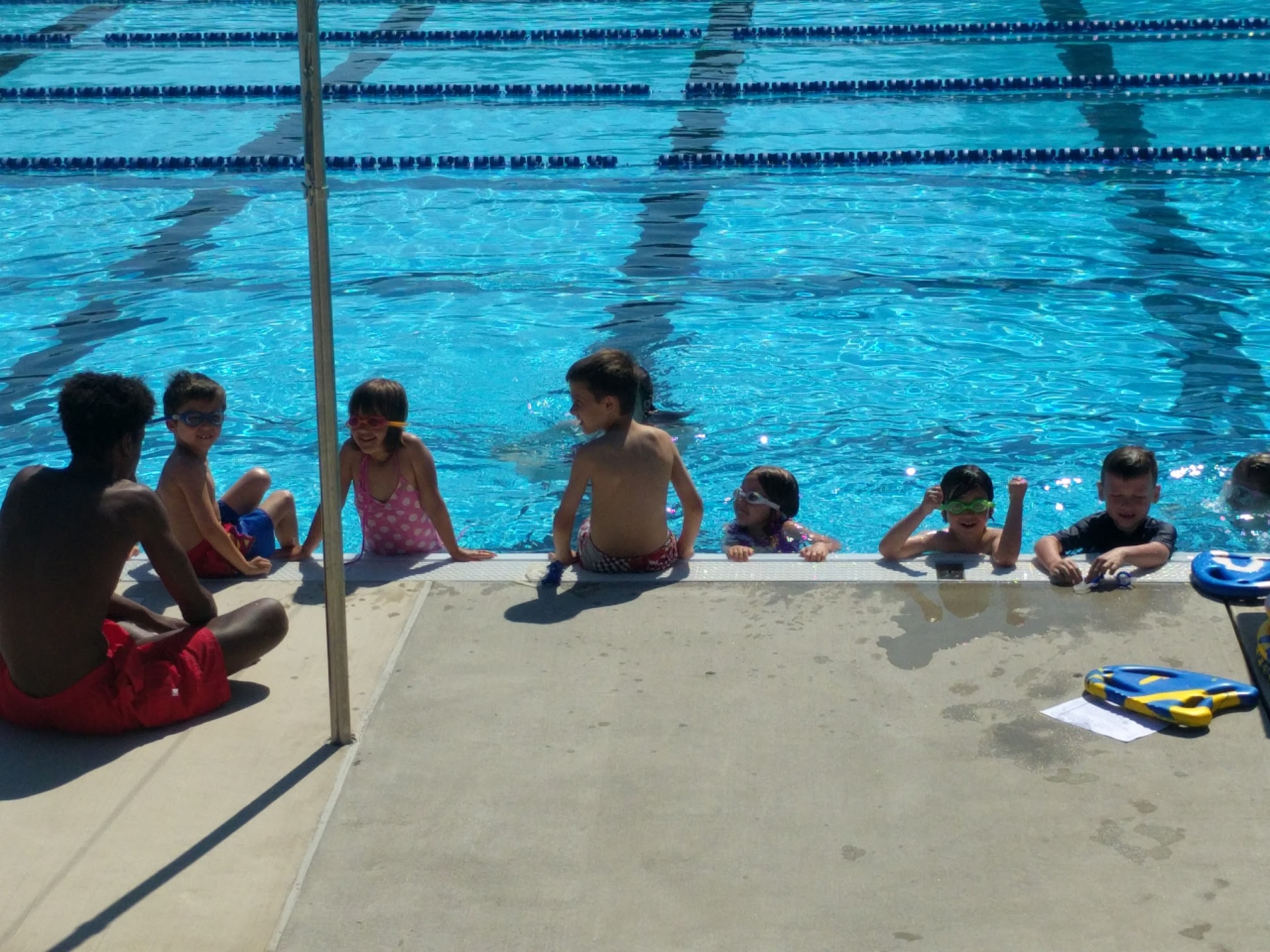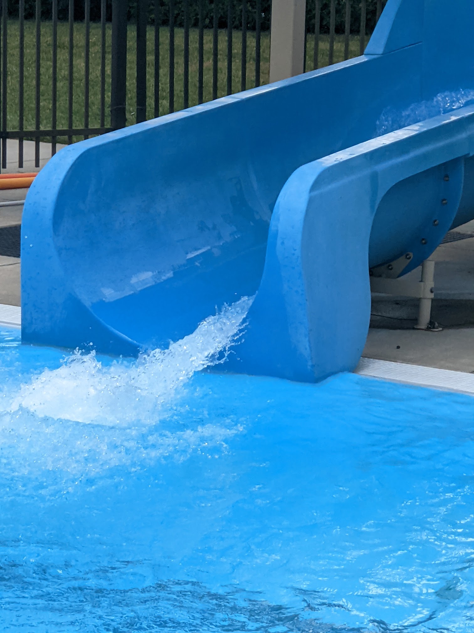 This is the best public swimming pool I've ever been to. There is an entrance or membership fee, it's not free, but family price is quite reasonable if you go often. We love it and have gone for many years. There's an engaging kiddie pool, olympic length pool, a sloped area for gradual entry to the water (great for new swimmers and people with disabilities), and a diving well with standard diving boards, a high dive, and a big slide. There are chairs for sitting poolside, though when it's packed you might want to bring your own. There's a snack bar, and also a shaded area with picnic tables where you can host a party. There are several nice trees to sit under. Plenty of lifeguards around. It's the best! Note: little ones who aren't yet potty trained need plastic pants over their swim diapers, and they are strict - if any accidents they will close the pool.