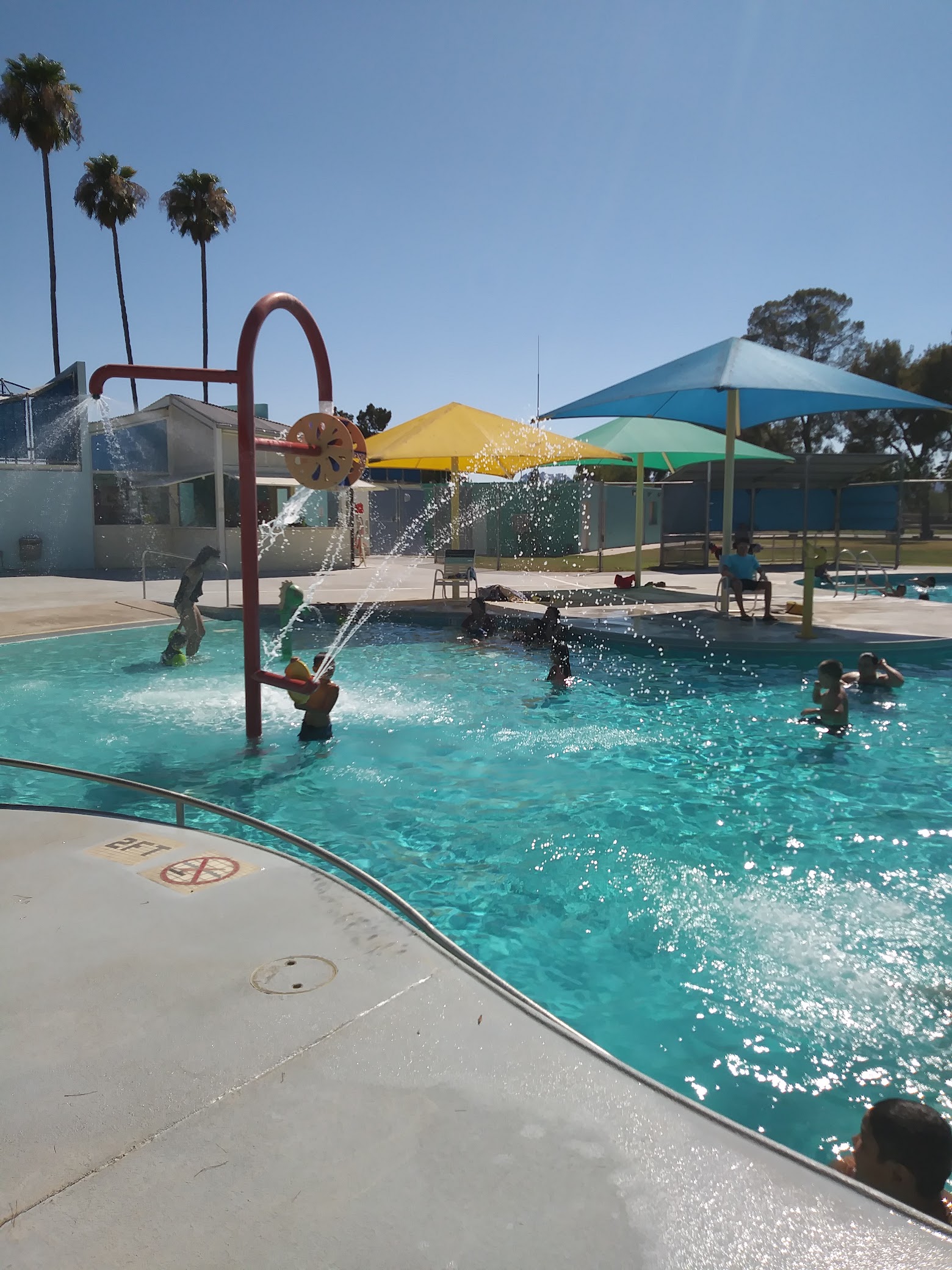 We walked up and I thought it was closed because the entire park area is fenced off but the pool part is open fun for the kids it's only 4 ft the splash pad wasn't running but they have similar water fixtures in the pool.