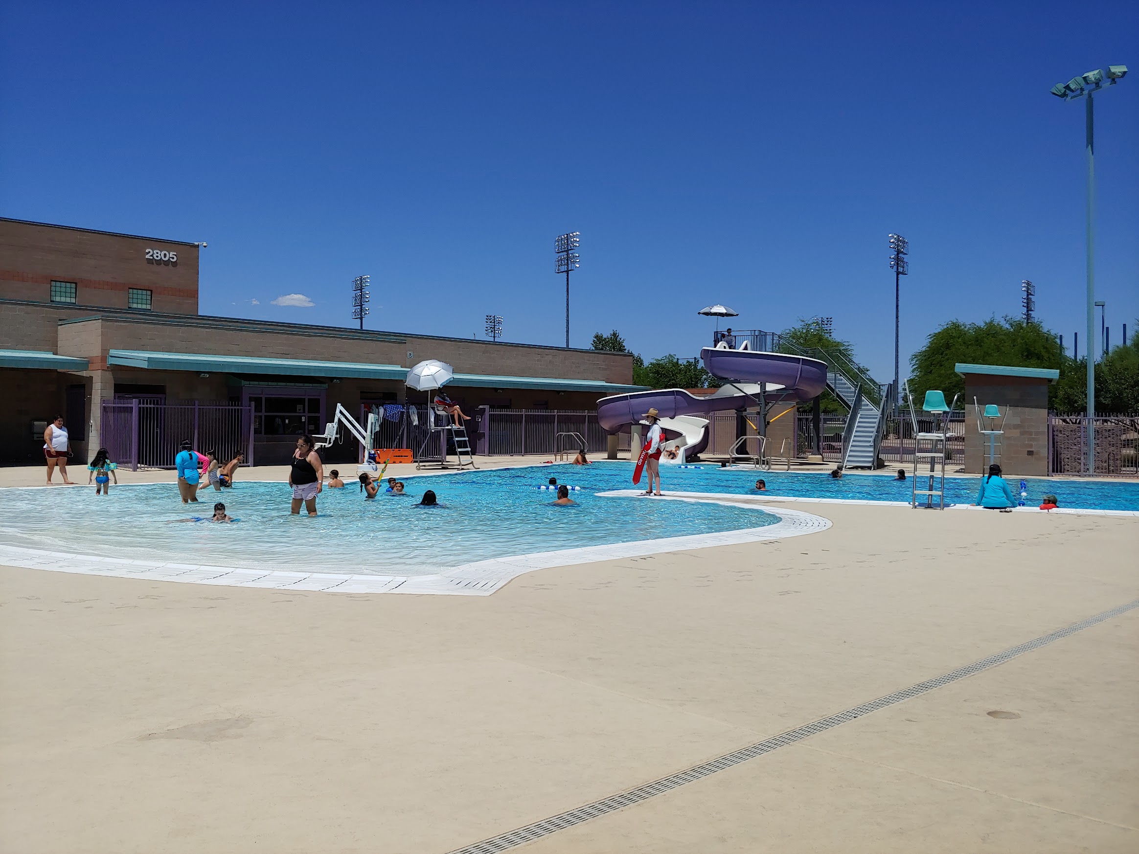 Kino Veterans Memorial Pool is a prominent public aquatic facility located in Tucson, Arizona, offering year-round access for public swimming, lap swim, and various aquatic programs. It features both a 50-meter competition lap pool and a recreation pool, often equipped with water slides and other splash features, catering to a diverse range of visitors and activities.