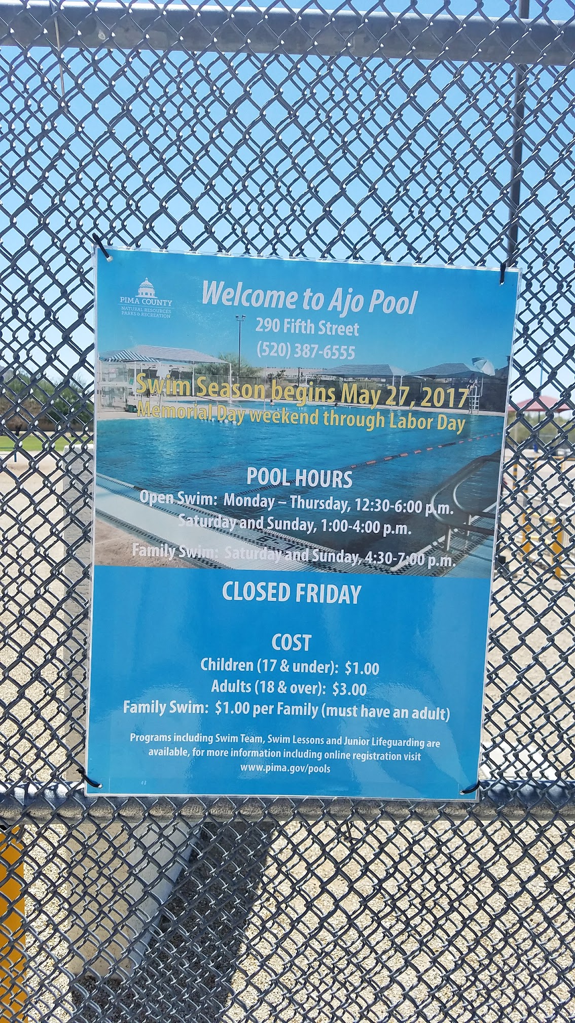 Your chances of finding this pool open are less than winning the lottery. It stands as a fine monument of government incompetence.