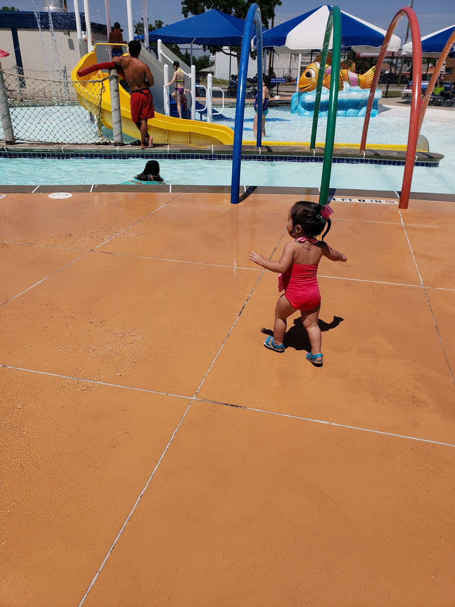 This is one of the best public pools I've been too! It's got a lot of great options for all ages; from a whole splash pad area with a toddler friendly slide, to a built in whirlpool, basketball hoop and two large slides that anyone 48"+ can go down. The lifeguards are also incredibly attentive and kind, and the entry fee is so reasonable!