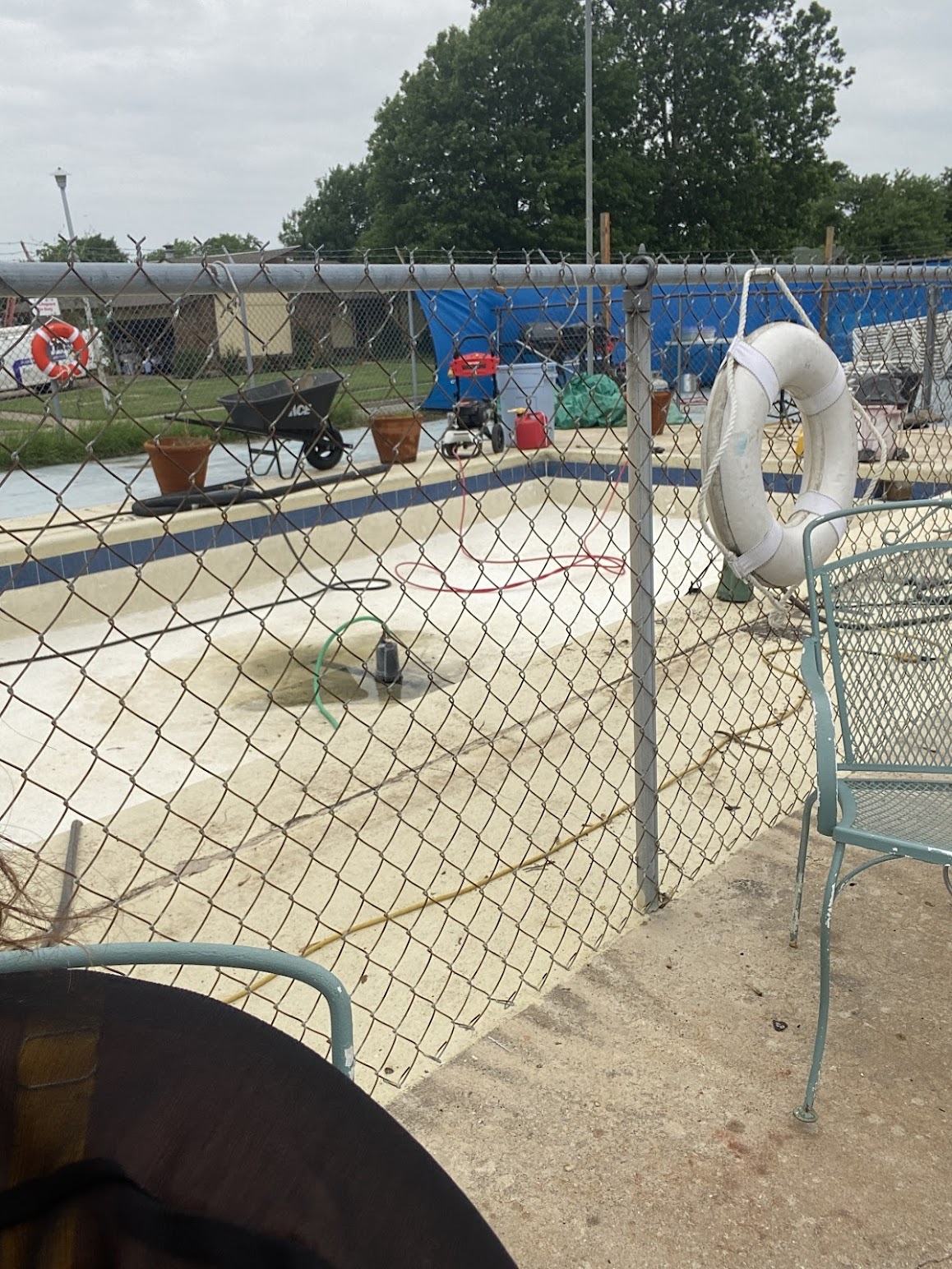 The pool is nice and big. The grass is always overgrown and junk along the backside of the fence. It couldn’t take that long to pick it up and make the pool look nicer.