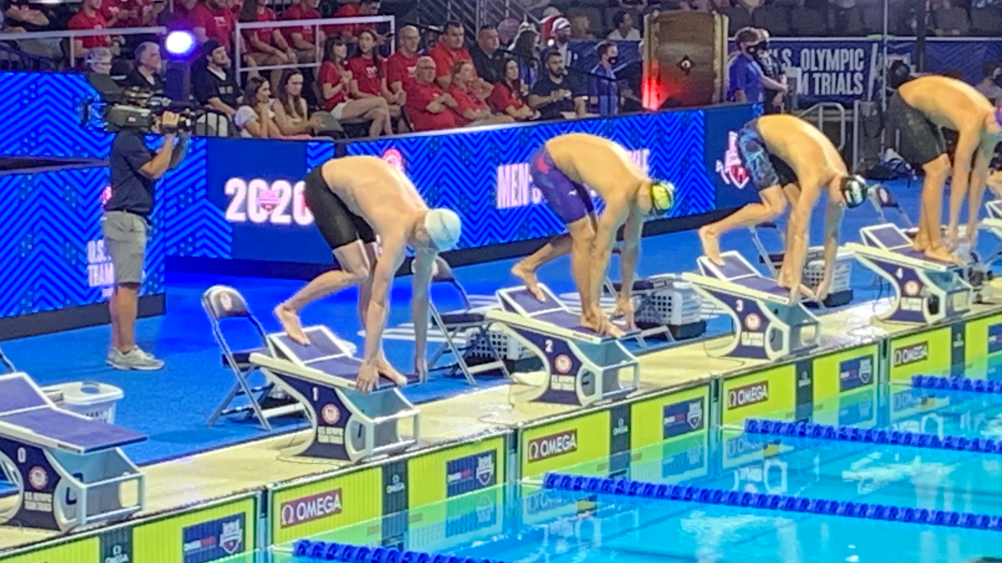 The main 50-meter Olympic-sized pool at Trident Aquatics Club is maintained at a comfortable 80 degrees Fahrenheit (approximately 26.7 degrees Celsius) year-round for optimal training and use.