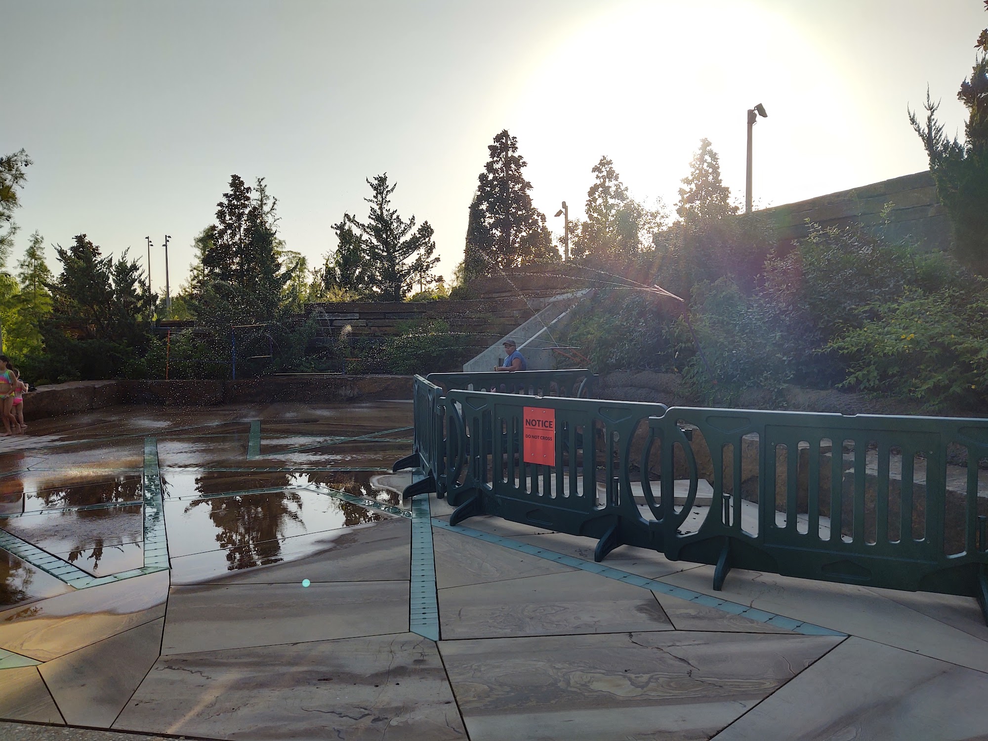 What are people saying (AI review summary)? The reviews describe a small splash pad that is very popular with kids, with one adult also getting wet. It's considered a normal splash pad, and a helpful tip suggests taking the right path at the main lodge to save about half a mile.