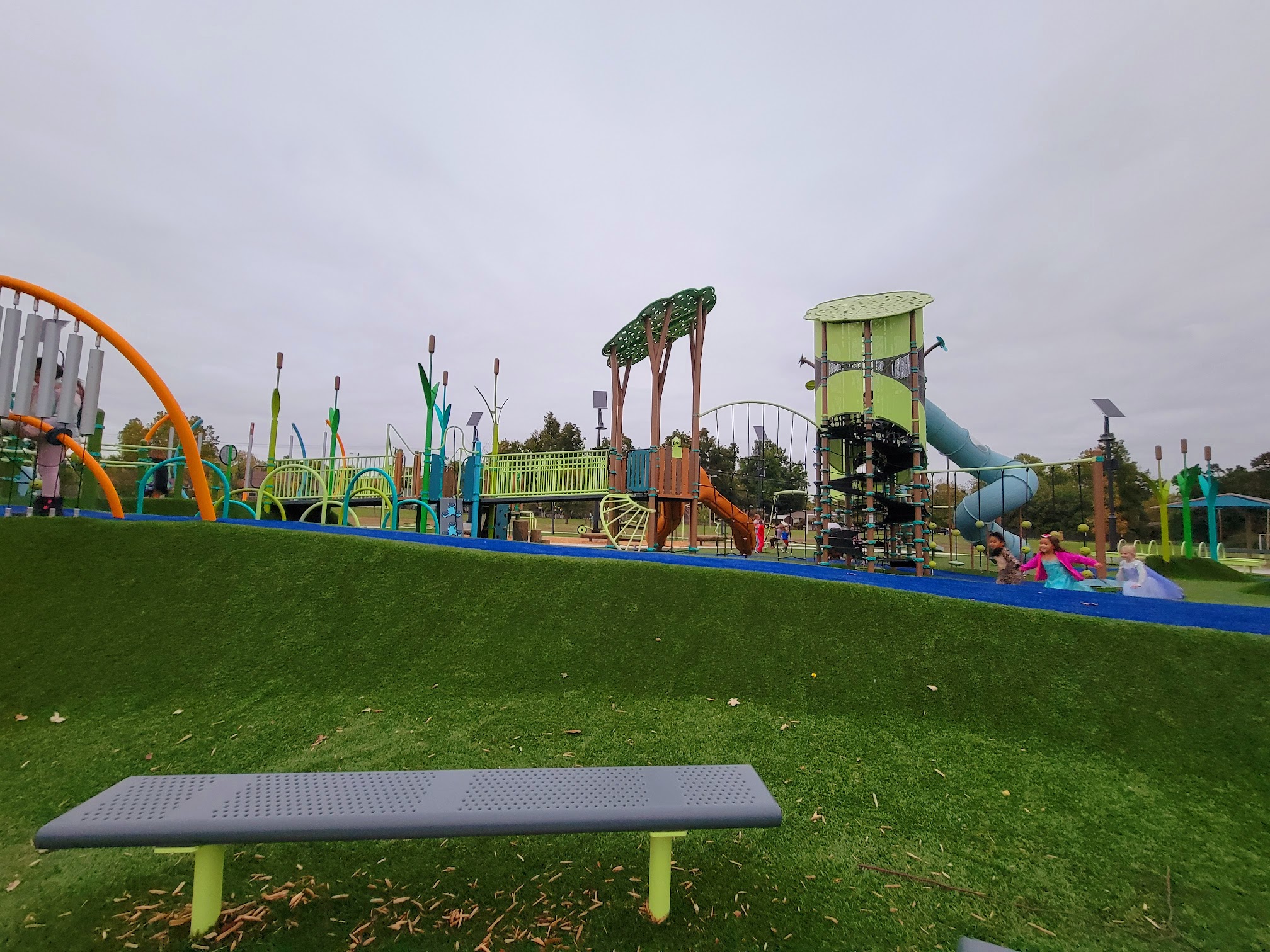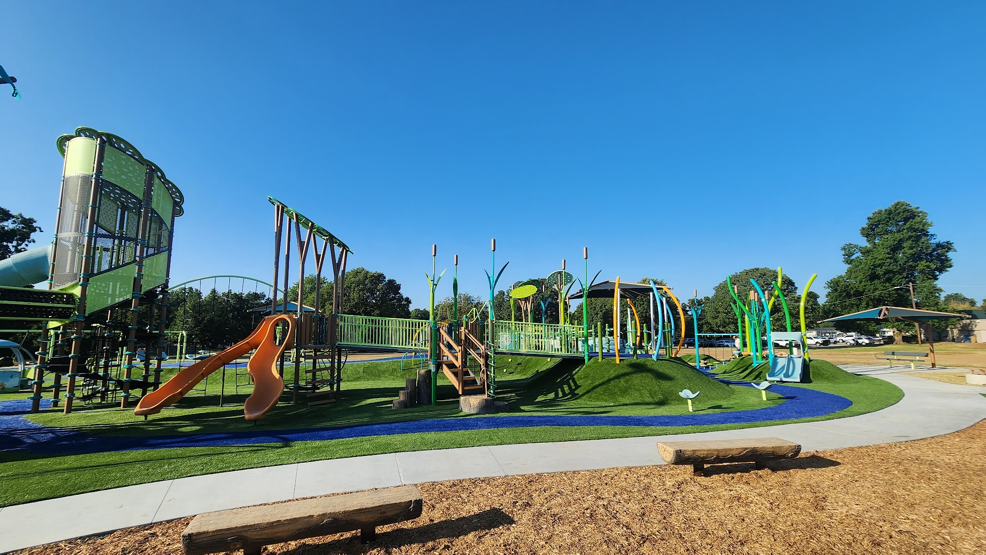 Expansive park with soccer fields, a playground and a pool. Splash pad and tennis court on-site.