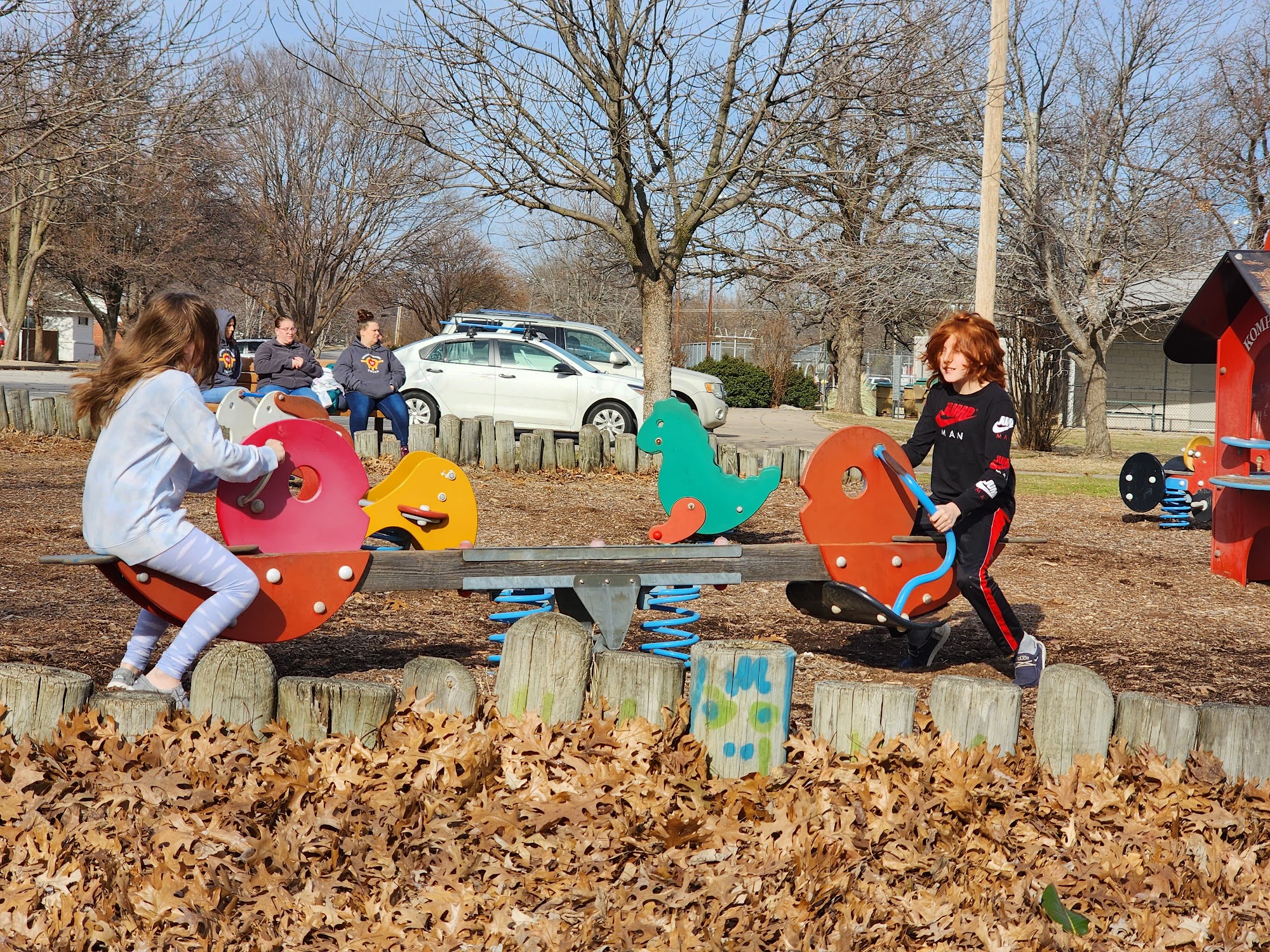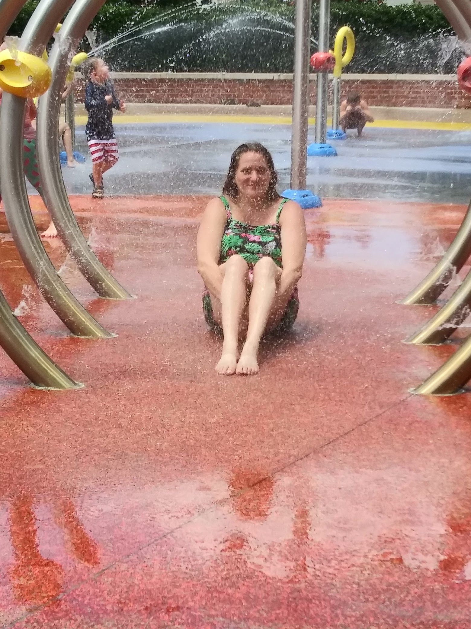 Girls are enjoying the breeze and the splash pad. Pool is closed sadly but still having fun.
