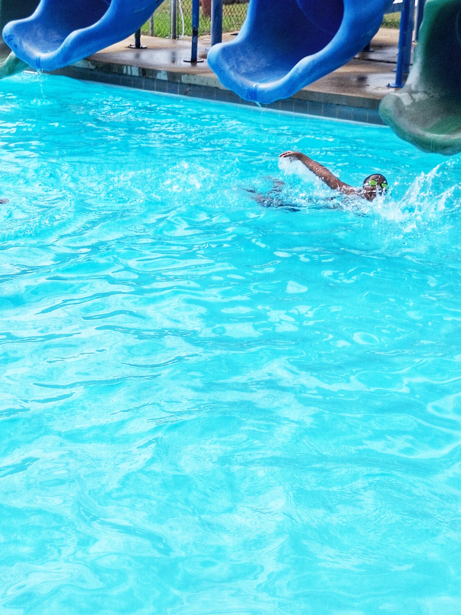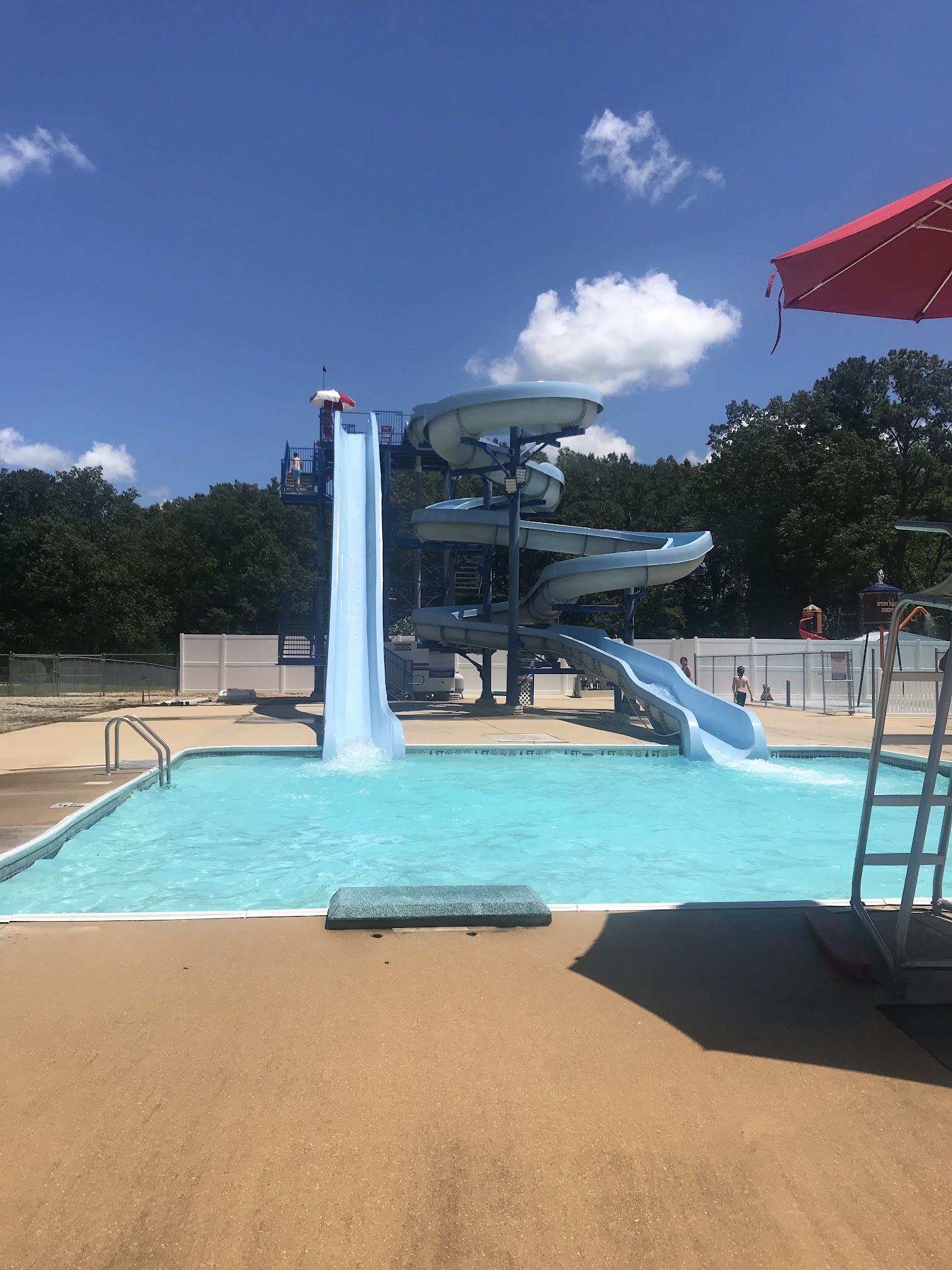GREAT PRICE for WATER FUN!!! Nice, clean, fun place to relax in the water with activities to keep the kids busy for hours. 4 small slides in the pool area, an adult only pool area- very small & water is only 4ft deep, splash pad area, 2 larger slides that the people LOVE, and a concession stand. Snack/Food Prices are very reasonable. On the outside is a gym area, playground, and basketball court. The court is a little outdated but still appeared usable. Music should be only family appropriate-I think and younger lifeguards should be a little more attentive. All in All great place for the entire family. Goooo & Support this business.