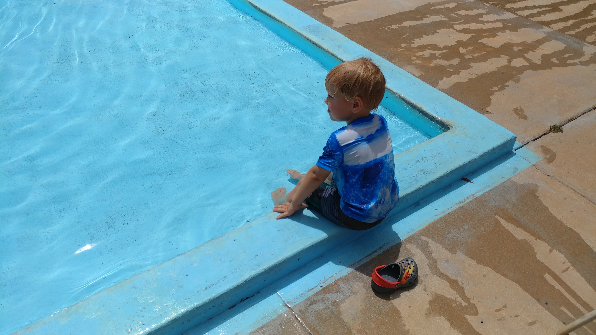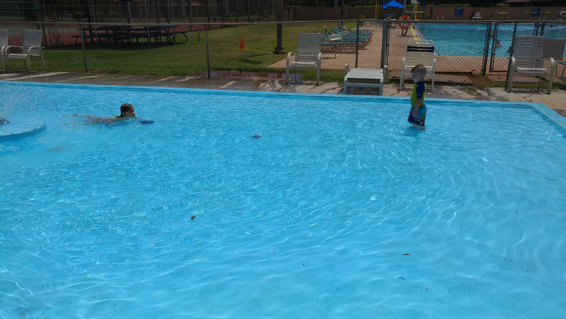 This is a great pool for families. There is a shallow baby pool (I hope they start operating the fountain again), a shallow 3.5ft end of the large pool where families with small children stay, some lap swim aisles, and the deep end with a tunnel slide. There are adequate chairs or tables but I wish there were a few more shaded areas. The hours are a drawback since they aren't open during the mornings at all.