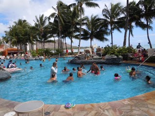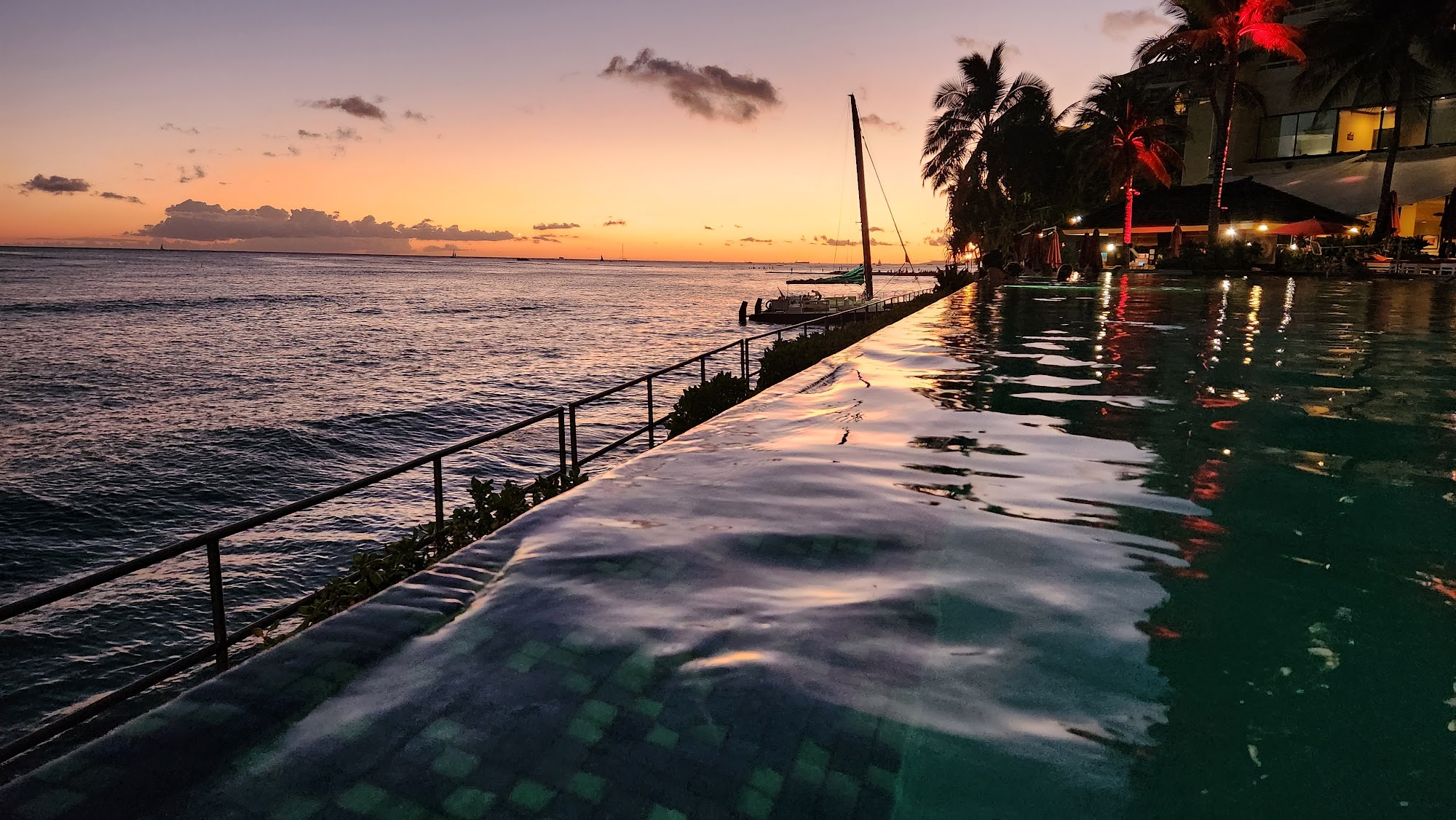 The Infinity pool at the Sheraton Waikiki, located at 2255 Kalākaua Ave, Honolulu, HI 96815, USA, is an iconic adults-only oceanfront pool renowned for its breathtaking panoramic views of Waikiki Beach and Diamond Head. Its unique infinity edge design creates a seamless visual transition with the Pacific Ocean, offering a luxurious and tranquil escape. It's a popular spot for guests to relax, enjoy cocktails, and witness stunning Hawaiian sunsets.